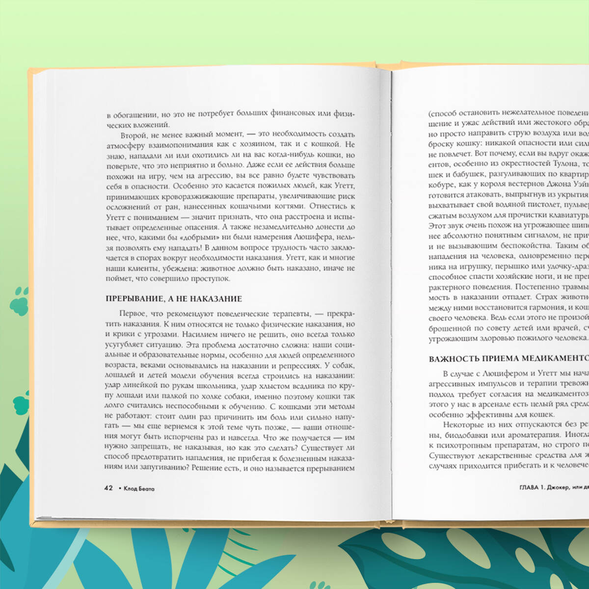 Многие любят кошек за их красоту и грацию, милый внешний вид и мягкую шерстку. Но почему порой так сложно их понять? Почему ласковый котенок может вырасти агрессивной кошкой, которая не любит прикосновения, портит мебель, царапается и кусается? Эта книга для тех, кто отчаялся бороться с проблемами в поведении своей кошки. Ее написал Клод Беата - всемирно признанный практик, специалист в области клинической ветеринарии, специализирующийся на изучении психики животных, в особенности - кошек. Вы научитесь лучше понимать питомца, узнаете его особенности, сильные стороны и слабости, поймете, как помочь питомцу, если он находится в стрессе, сумеете выстроить с ним доверительные отношения и обеспечить его и ваше благополучие. Эта книга поможет: - разобраться, в чем причины внезапной агрессии у котов и когда пора обращаться к зоопсихологу или неврологу; - познакомиться с основными правилами создания благоприятной окружающей среды для стабилизации кошачьей психики; - обеспечить мирное сожительство нескольких кошек в одном доме; - узнать больше о страхах и тревожном состоянии кошки и понять, как с ними бороться. «Изучите и поймите свою кошку. Есть решения, которые помогут вам и вашему питомцу жить лучше благодаря пониманию этого порой загадочного животного. Спасибо, доктор Беата!» - Отзыв с Амазон «Имея 11 кошек, я не ожидала, что узнаю так много о своих любимых созданиях. Эту книгу я проглотила за 2 дня. Я безмерно уважаю ветеринаров и Клода БЕАТА в частности. Я также изменила свой образ действий, особенно в отношении некоторых кошек, которые не хотят, чтобы их гладили без их разрешения. Эта книга - для любителей очаровательных и загадочных кошек и всех животных в целом». - Отзыв с Амазон