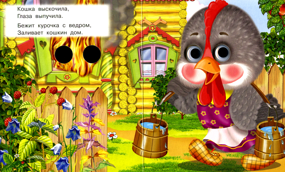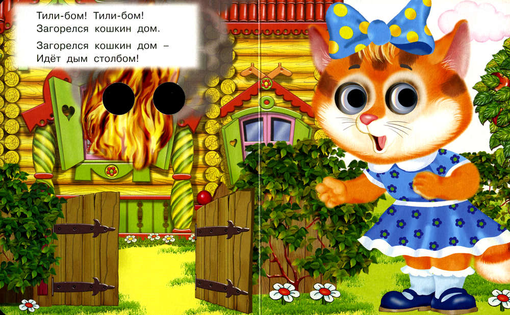 Серия мини-книжек для самых маленьких малышей "Ладушки-глазки" на плотном картоне с яркими иллюстрациями. В ней изображены герои забавной сказки «Кошкин дом». Все герои сказки вместо глазок имеют прорези. А на последней странице находятся вращающиеся пластмассовые глазки, которые при переворачивании страницы вставляются в эти прорези. Книжка имеет 10 картонных иллюстрированных страниц в стихах.