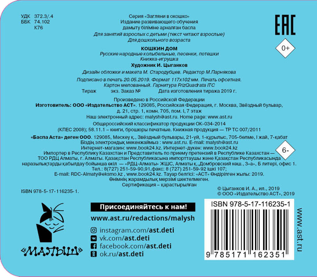«Кошкин дом» - одна из самых известных сказок С.Я.Маршака. Прочитайте её своему крохе. Несмотря на то, что сказка имеет драматичный сюжет, заканчивается хорошо. Она повествует об отношении богатых к бедным, о взаимовыручке и настоящей дружбе. А благодаря серии «Загляни в окошко» книжку будет читать вдвойне интереснее. Можно будет открывать и закрывать окошки, рассматривать яркие картинки и сопереживать героям. Для детей дошкольного возраста.| Издательство | Издательство "АСТ" |