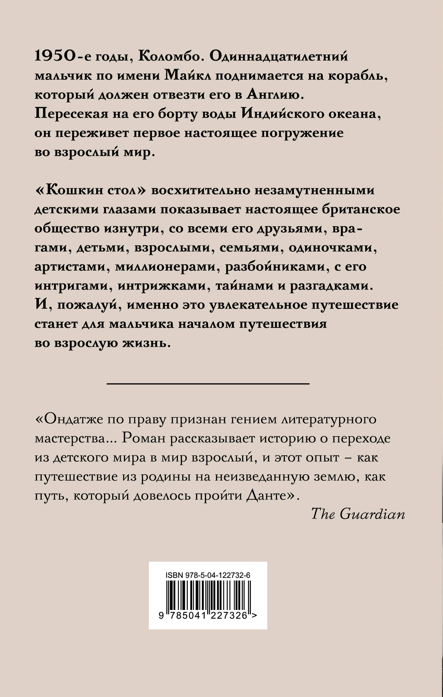 1950-е годы, Коломбо. Одиннадцатилетний мальчик по имени Майкл поднимается на корабль, который должен отвезти его в Англию. Пересекая на его борту воды Индийского океана, он переживет первое настоящее погружение во взрослый мир. "Кошкин стол" восхитительно, незамутненными детскими глазами показывает настоящее британское общество изнутри, со всеми его друзьями, врагами, детьми, взрослыми, семьями, одиночками, артистами, миллионерами, разбойниками, с его интригами, интрижками, тайнами и разгадками. И, пожалуй, именно это увлекательное путешествие станет для мальчика началом путешествия во взрослую жизнь.