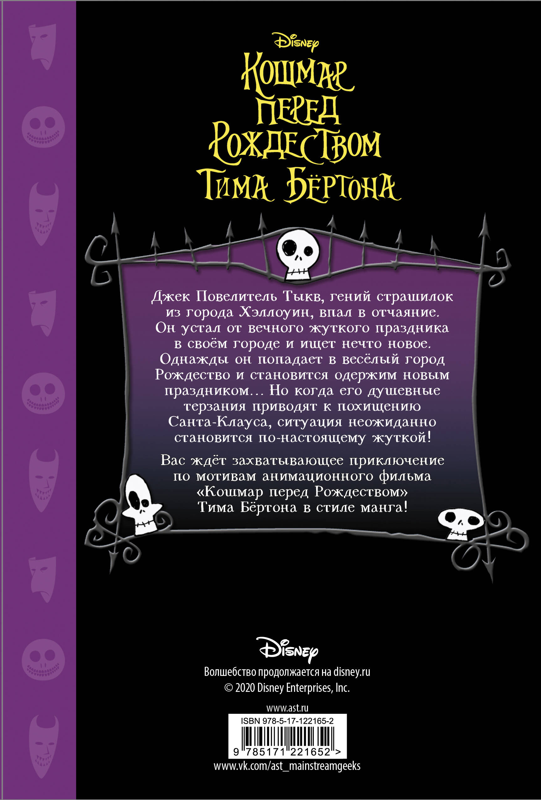 Джек Повелитель Тыкв, гений страшилок из города Хэллоуин, впал в отчаяние. Он устал от вечного жуткого праздника в своём городе и ищет нечто новое. Однажды он попадает в веселый город Рождество и становится одержим новым праздником… Но когда его душевные терзания приводят к похищению Санта-Клауса, ситуация неожиданно становится по-настоящему жуткой! Вас ждёт захватывающее приключение по мотивам анимационного фильма "Кошмар перед Рождеством" Тима Бёртона в стиле манга!| Издательство | Издательство "АСТ" |