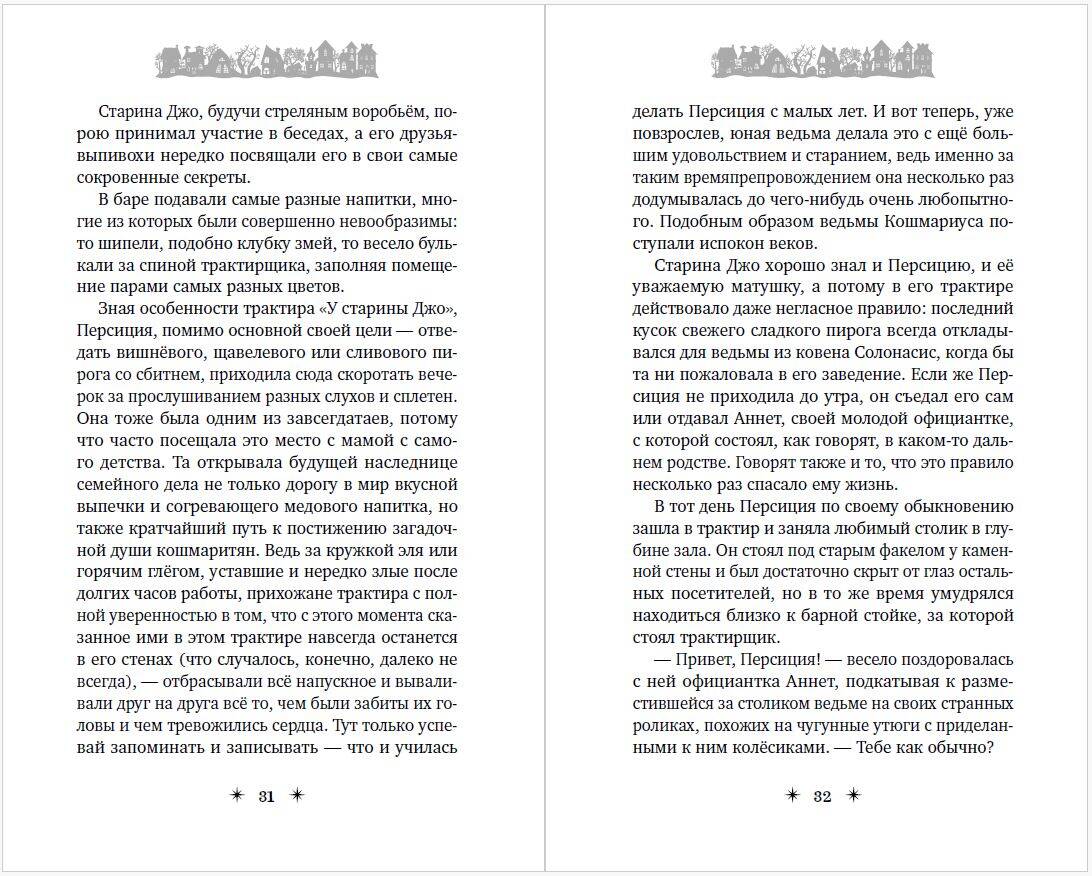 История в духе мистического романа «Мистер вечный канун», атмосферных историй «Рэйвенфолл. Гостиница с характером» и «Октябрьские ведьмы». У аудитории сильная потребность в новых отечественных авторах, созвучных им по интересам. Норрис Мирт мастерски создаёт фэнтезийные миры и сильных персонажей, в которых каждый читатель узнает себя. Кошмариус - уютный в своей неповторимой мрачноватости город, укромный уголок для живых (и мёртвых). Здесь на каждом шагу происходят странности. И этому совсем не рад многострадальный прозектор, господин Мортимер Кадаврус. Но, увы, кошмаритяне полны сюрпризов! А особенно Персиция - юная ведьма из лавки «Зелья на все случаи жизни и смерти», наследница могущественного ковена Солонасис. Девушка вовсю готовится к приезду своих именитых родственниц, ведь её ждёт важный экзамен. Чтобы не разочаровать ведьм, Персиция решает помочь отчаявшемуся оборотню. Она варит совершенно необыкновенное по своим свойствам зелье, способное решить его главную проблему. Кажется, что всё складывается как нельзя лучше, но действительно ли это так?| Издательство | ООО "Издательство "Эксмо" |