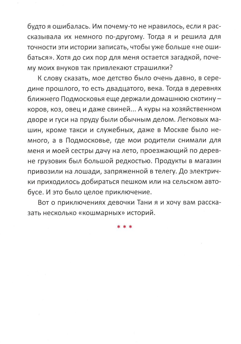Жила-была девочка Таня. А потом она выросла, вышла замуж, родила дочь, которая тоже выросла, и у Тани появились внуки. Перед сном мальчишки просили бабушку рассказать им какую-нибудь интересную историю. Желательно страшную. И она им рассказывала. «Какое кошмарное у тебя было детство»,-удивлялись внуки, родившиеся в 21-м веке. И требовали новых рассказов. Однажды Таня записала свои рассказы - так появилась эта книжка. Бабушка так и не поняла, отчего ее мальчишек привлекали именно страшные истории? Но, возможно, вы, прочитав книжку, найдете ответ на этот вопрос.| Издательство | Аякс-Пресс |