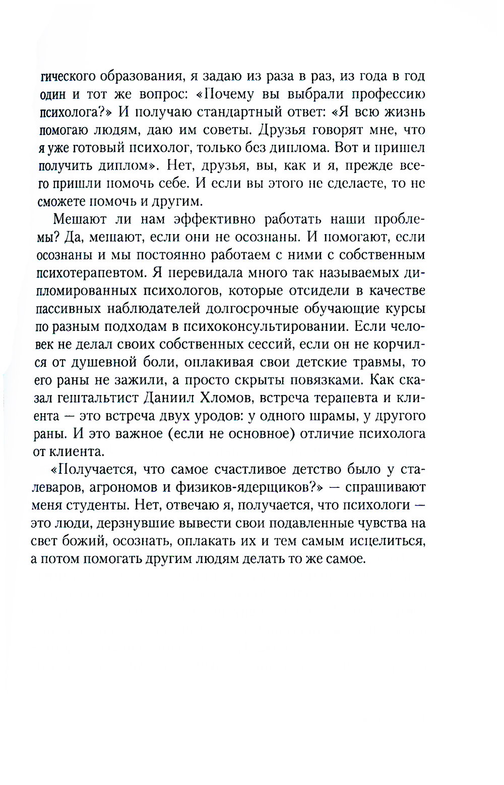 Римма Ефимкина четверть века обучает психологов консультированию и в этой книге делится собственным опытом профессионального становления. Она описывает типичные ошибки начинающих и дает инструменты, позволяющие превратить недостатки в ресурс. В книге вы найдете ответы на следующие вопросы: • Что мотивирует человека выбрать профессию психолога? • Как должно быть организовано обучение психологическому консультированию? • Какова структура психотерапевтической сессии? • В чем назначение интервизионных групп? Также вы узнаете о технике безопасности психоконсультанта и о том, как максимально эффективно адаптироваться на рынке психологических услуг. Легкий шутливый стиль книги, доверительный диалог с читателем и авторское самораскрытие заставляют читать книгу на одном дыхании.| Издательство | Класс |
