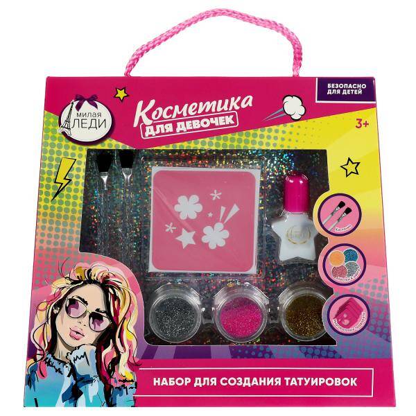 Аннотация: Косметика ДЛЯ ДЕВОЧЕК набор для создания татуировок, с блестками МИЛАЯ ЛЕДИ в кор.2*24шт
