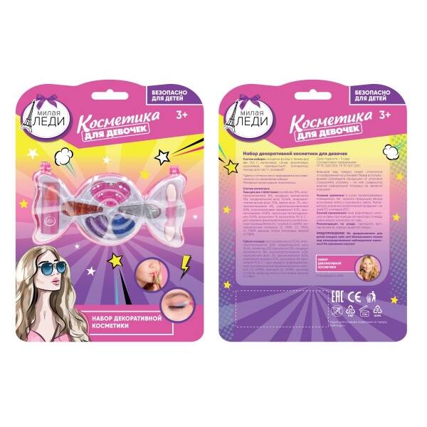 Аннотация: Косметика ДЛЯ ДЕВОЧЕК тени для век с блестками, помада МИЛАЯ ЛЕДИ в кор.2*180шт