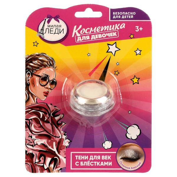 Косметика ДЛЯ ДЕВОЧЕК тени для век с блёстками, серебристые МИЛАЯ ЛЕДИ в кор.48*12шт