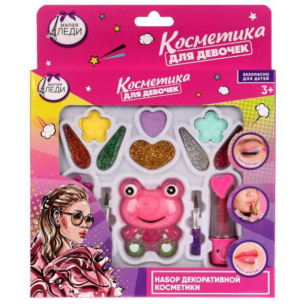 Аннотация: Косметика ДЛЯ ДЕВОЧЕК тени, тени для век с блестками, помада, блеск для губ МИЛАЯ ЛЕДИ в кор.2*120шт