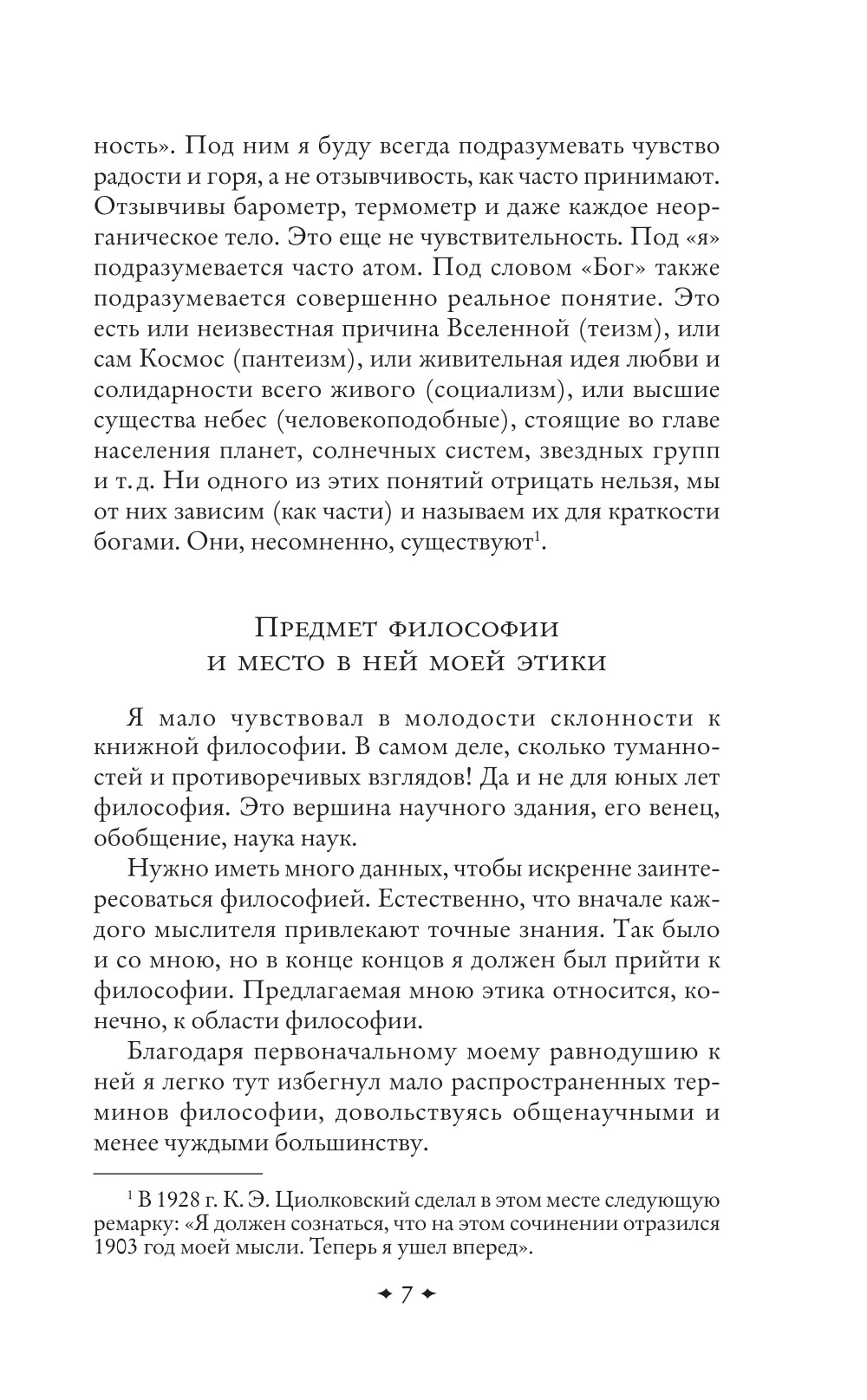 Константин Эдуардович Циолковский (1857-1935) - российский ученый и изобретатель, основоположник современной космонавтики. Космические полеты и ракетостроение были главными исследованиями, которым он посвятил свою жизнь. Но говорить о Циолковском только как об отце космонавтики - значит, обеднить его вклад в современную науку и технику. Предлагаем читателю познакомиться с «космической философией» Константина Циолковского, с его взглядами на вопросы этики, основы нравственности, устройство общества и многое другое. «...хочу быть Чеховым в науке: в небольших очерках дать серьезное логическое познание наиболее достоверного учения о Космосе». И пусть его теория о вечной юности Вселенной, о совершенном Разуме окажется так же верна, как предсказание о том, что «...математика проникнет во все области знания», как работает сегодня разработанный именно Циолковским принцип движения на воздушной подушке. С заботой о глазах! Издание с крупным шрифтом для удобства чтения.| Издательство | Эксмо |