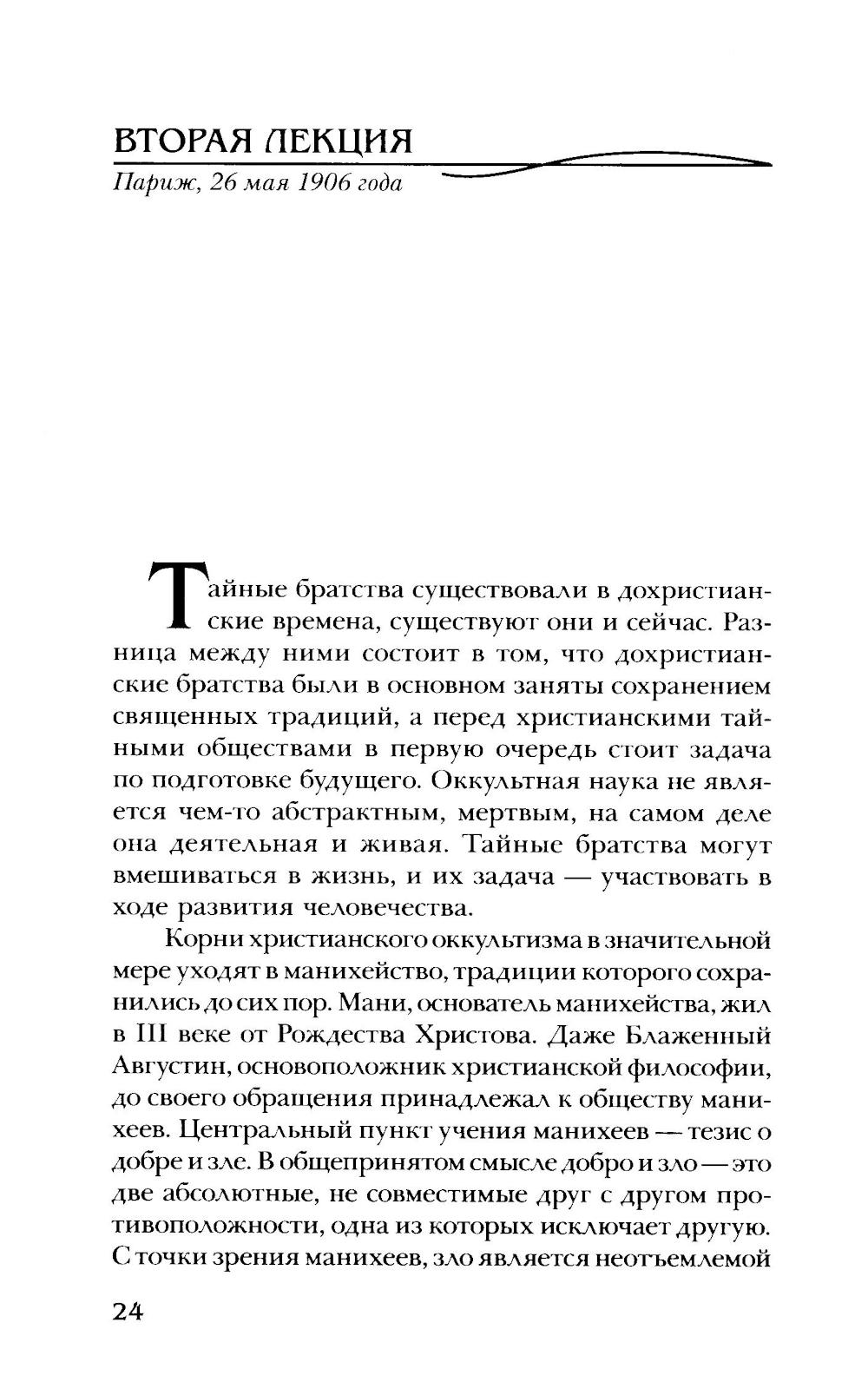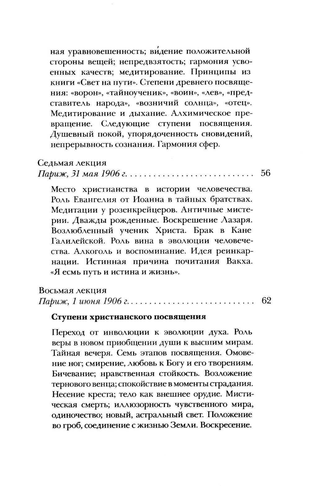 В лекциях немецкого философа и ученого, основоположника антропософии Р. Штайнера (1861-1925) представлено понимание мира и человека, исходящее из данных высшего знания. Курс построен как систематическое введение в целостное мировоззрение. Рассмотрены духовный, душевный и телесный состав природы человека, противоположность древних (азиатских) и современных (европейских) методов посвящения, цель духовного знания, гармония кармы и свободы, тайна добра и зла, цели эволюция Земли, смысл Откровения Иоанна Богослова. В числе слушателей цикла были также деятели русского «серебрянного века», не принадлежавшие к Теософскому обществу, - К.Д. Бальмонт, А.Н. Бенуа, М.А. Волошин, З.Н. Гиппиус, Д.С. Мережковский и др. Издание снабжено примечаниями и адресовано всем, кто питает интерес к вопросам духовной жизни и самопознания.| Издательство | Энигма |