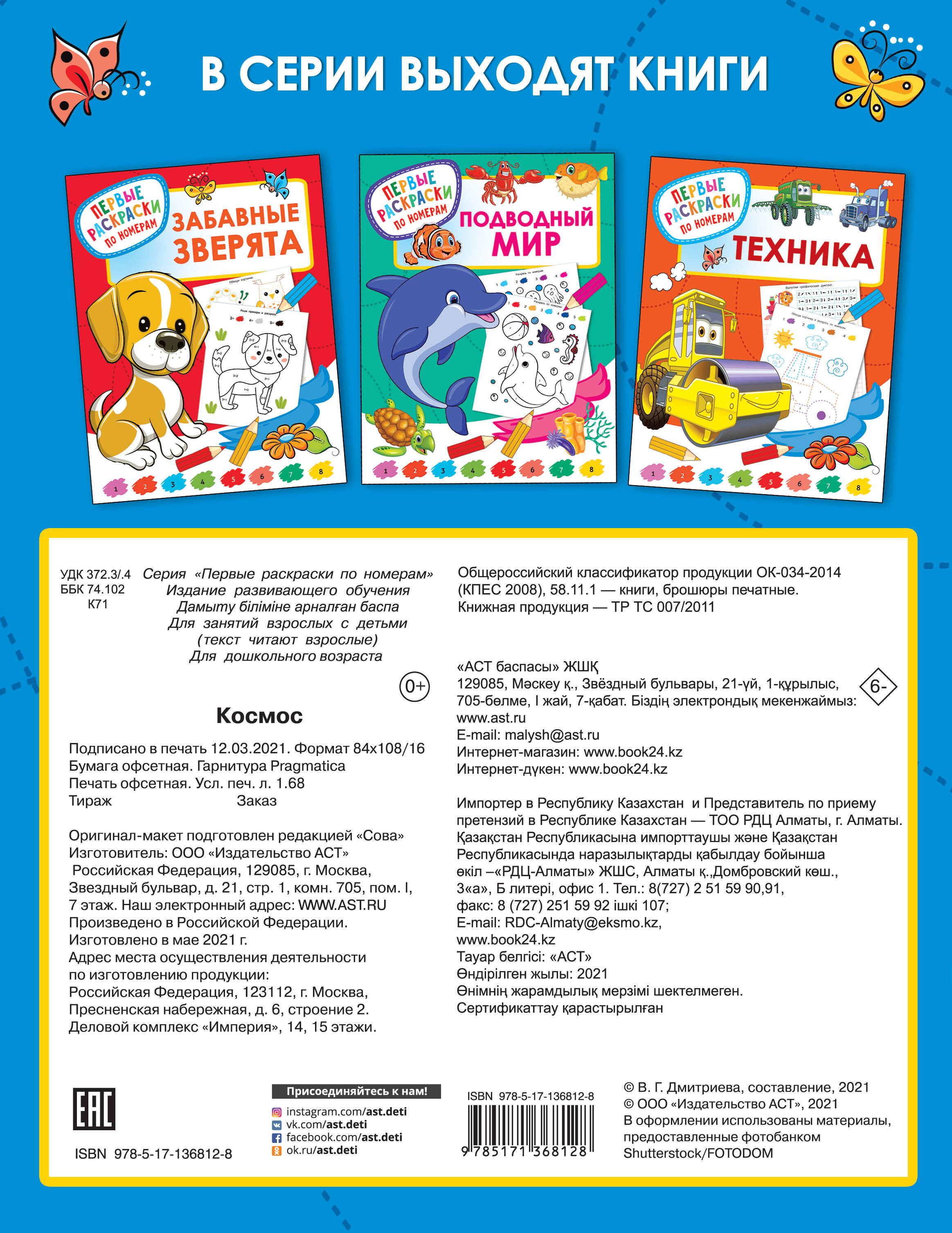 О чем эта книга Новая увлекательная книжка в серии «Первые раскраски по номерам» - путешествие в мир арифметических раскрасок, логических задачек и графических диктантов. Кому эта книга будет интересна Это книга веселых интеллектуальных игр для настоящих умников и умниц. Каковы особенности этой книги • Раскрашивание картинок по номерам - прекрасное занятие для развития мелкой моторики, наблюдательности, смекалки и знакомства с цифрами. • Ребенок будет раскрашивать картинки с числами и примерами на сложение и вычитание - и получит навыки счета от 1 до 10. • Выполняя графические диктанты, дошкольники учатся ориентироваться на листе бумаги, осваивают понятия «вверх», «вниз», «влево», «вправо». • Простые и интересные задания тренируют графические навыки, развивают образное мышление и воображение, сообразительность и логику. • Книжка помогает раскрыть творческий потенциал ребенка, дарит ему множество положительных эмоций. Раскрашиваем картинки с числами и примерами, развиваем логику, внимание, осваиваем счет до 10!