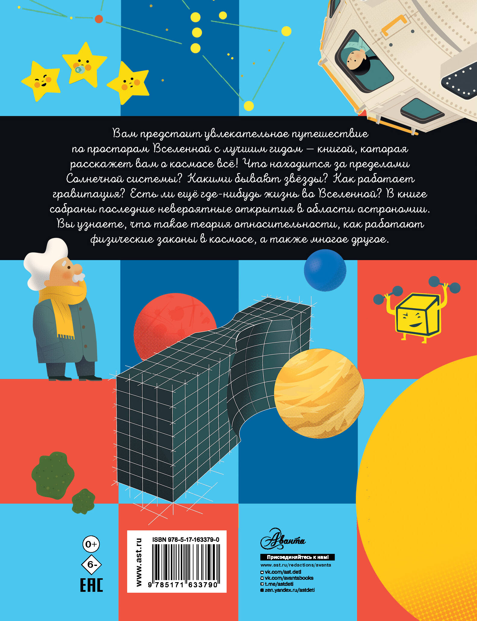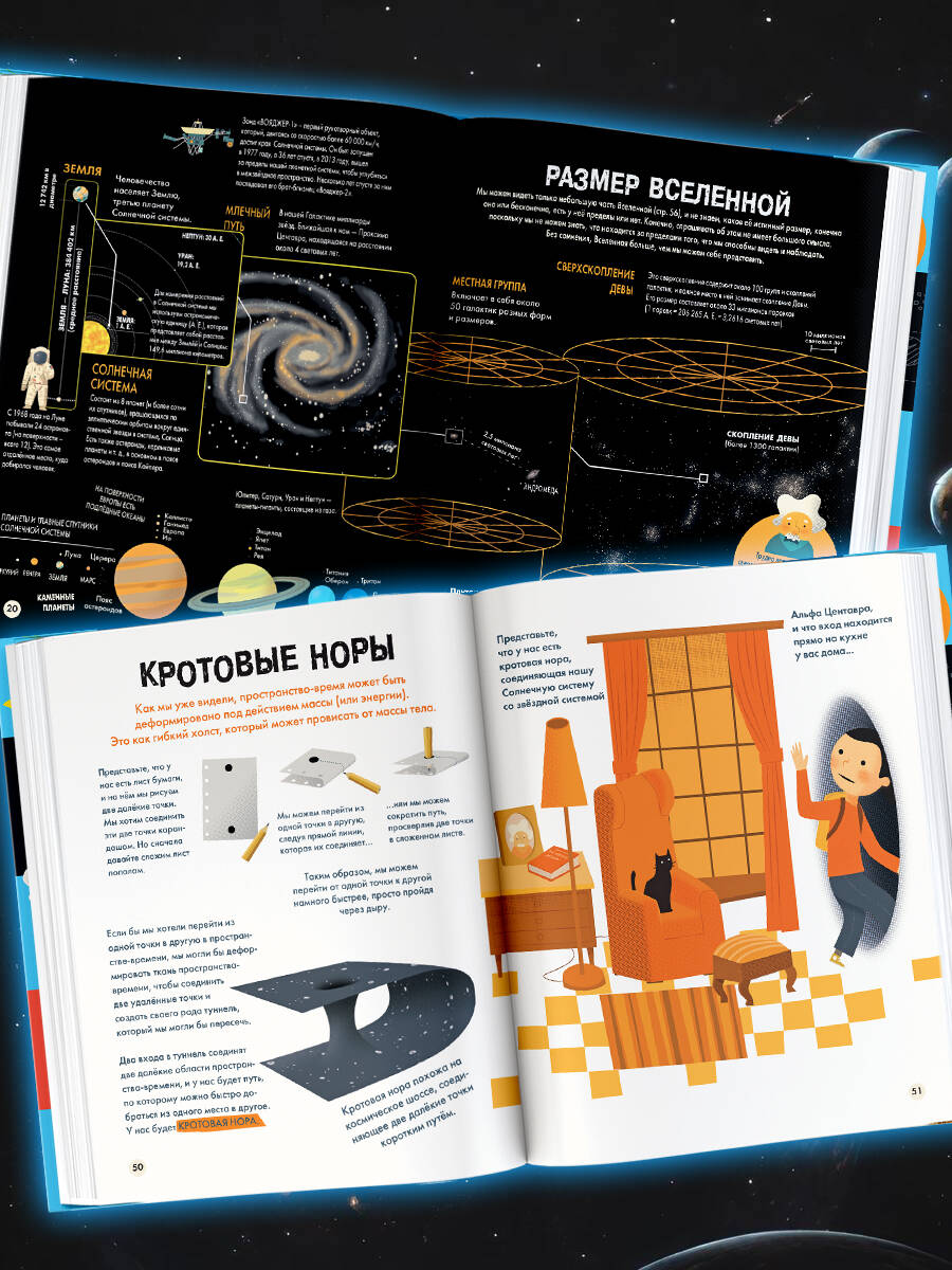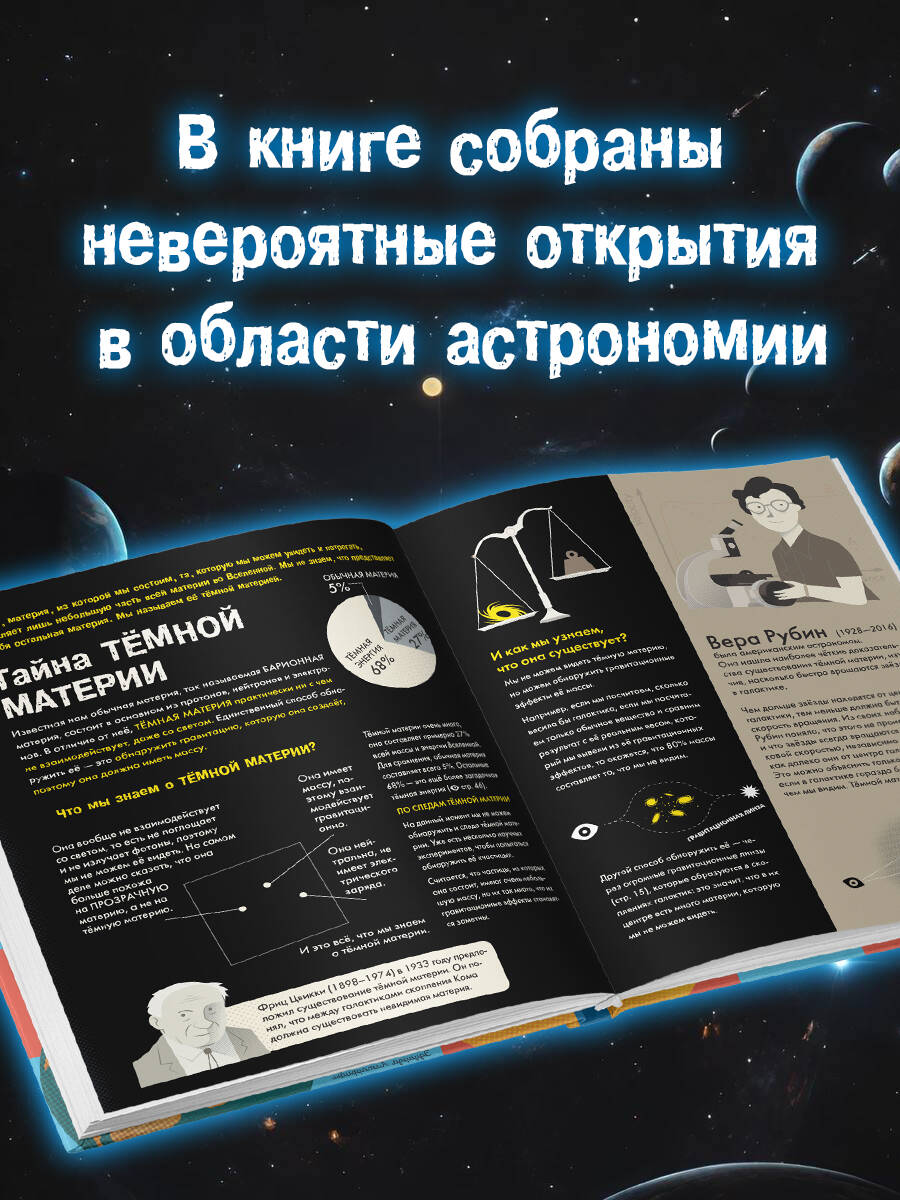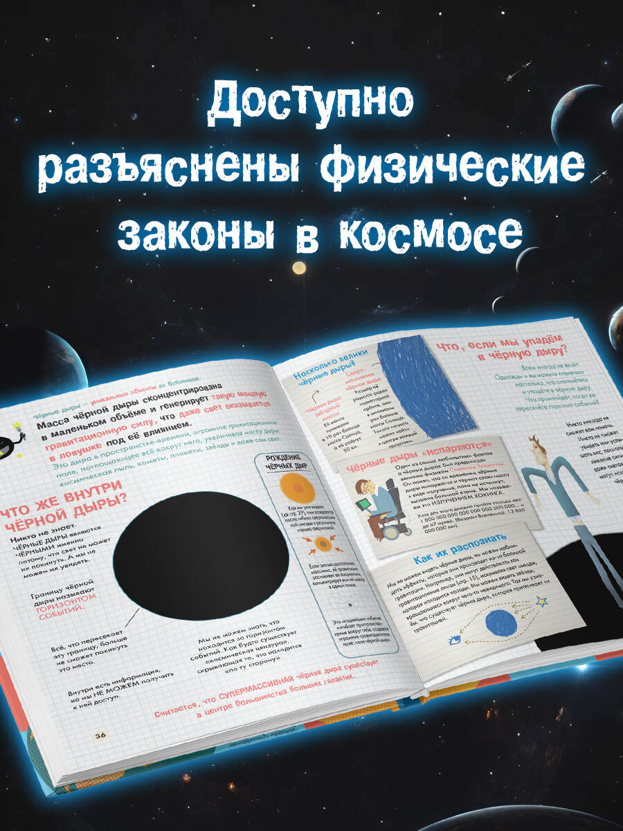 Вы держите в руках книгу, которая расскажет вам всё о нашей Вселенной от её зарождения до возможного конца. Вам предстоит раскрыть многочисленные тайны космоса: какими бывают звёзды, возможна ли жизнь на других планетах, почему Вселенная расширяется, как путешествовать через "кротовые норы" и многое другое. Сочетание большого количества фактов и красочных современных иллюстраций делает это издание идеальным подарком и незаменимым помощником в школьных проектах. Для среднего школьного возраста.| Издательство | Издательство "АСТ" |