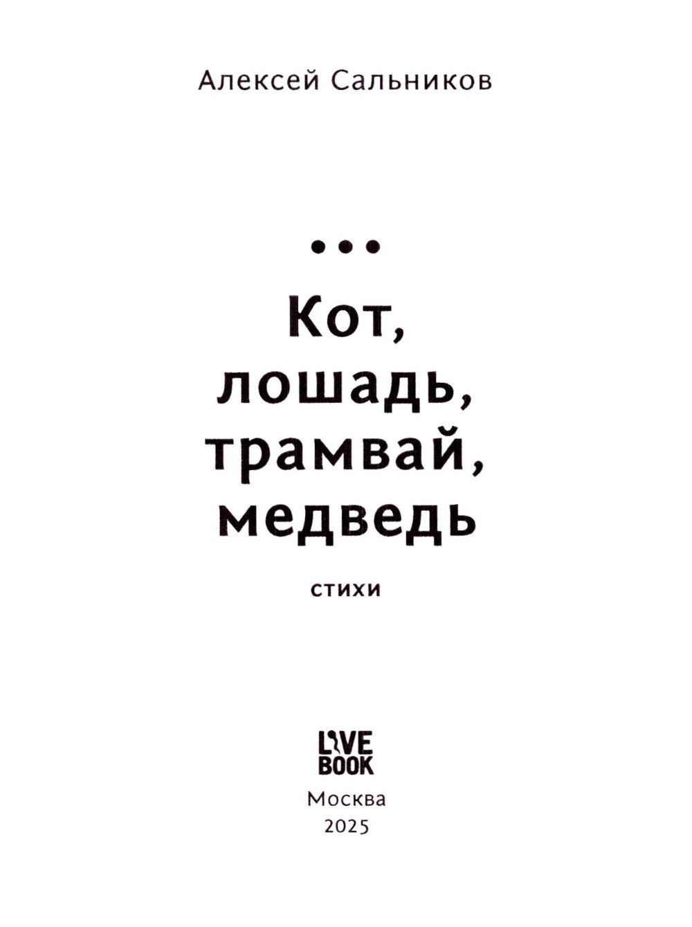 Алексей Сальников - открытие современной русской литературы, его роман «Петровы в гриппе и вокруг него» стал бестселлером и получил премии «НОС» и «Национальный бестселлер». Писать стихи Алексей начал в молодости и быстро стал знаковой фигурой уральской поэтической школы. Поэзия Сальникова - это ключ к пониманию и осмыслению его прозы; фундамент его творчества. Эта книга - возможность познакомиться с Сальниковым-поэтом и по-новому понять Сальникова-прозаика. В сборник «Кот, лошадь, трамвай, медведь» вошли тексты, охватывающие более пятнадцати лет жизни автора.| Издательство | Livebook (Лайвбук) |