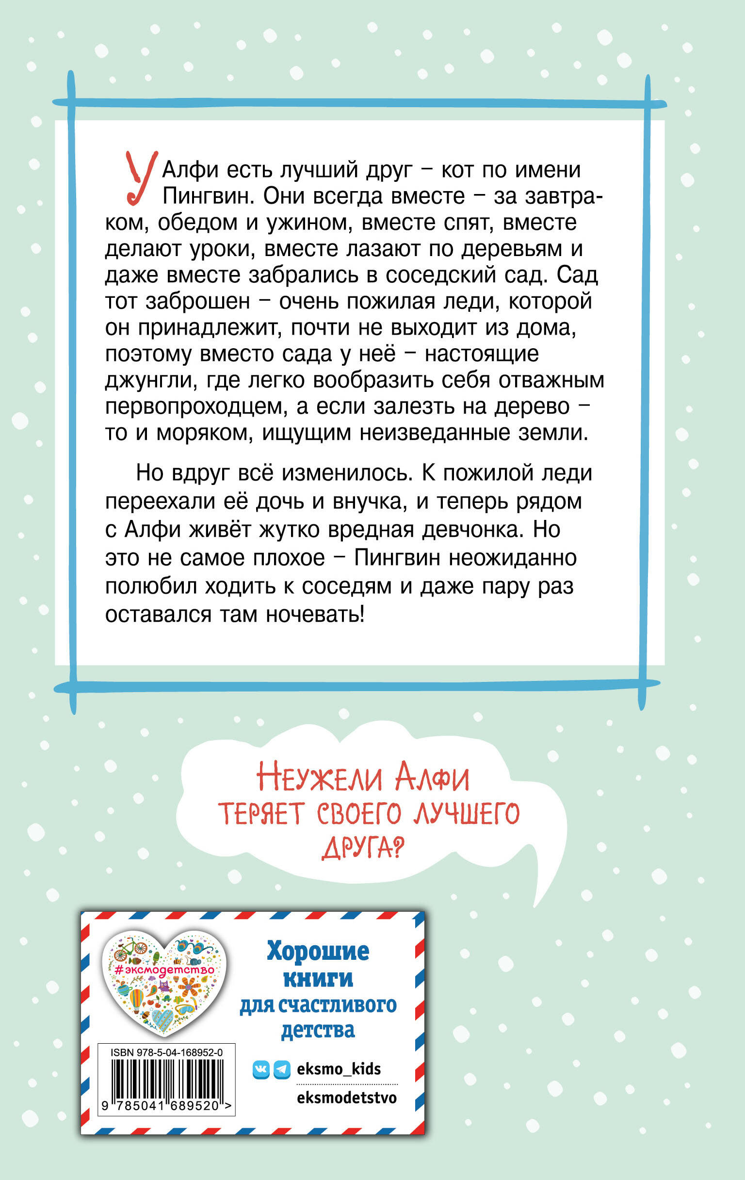 Это история про то, что никакой девчонке с лакомствами не разбить крепкую дружбу мальчика и кота. Хотя она и не пыталась… Холли Вебб - писательница, популярная во всём мире, но особенно её полюбили в России, где её книги продаются миллионными тиражами. Истории Холли Вебб бережно учат чуткости, любви, доброте и ответственности. Книга издана на белой бумаге, внутри достаточно крупный шрифт и чёрно-белые иллюстрации, которые позволят детям переключать внимание, чрезмерно не нагружая глаза. Идеальна для родителей, которые хотят, чтобы дети втянулись в чтение, или для тех, чьи дети уже стали заядлыми читателями.| Издательство | Эксмо |
