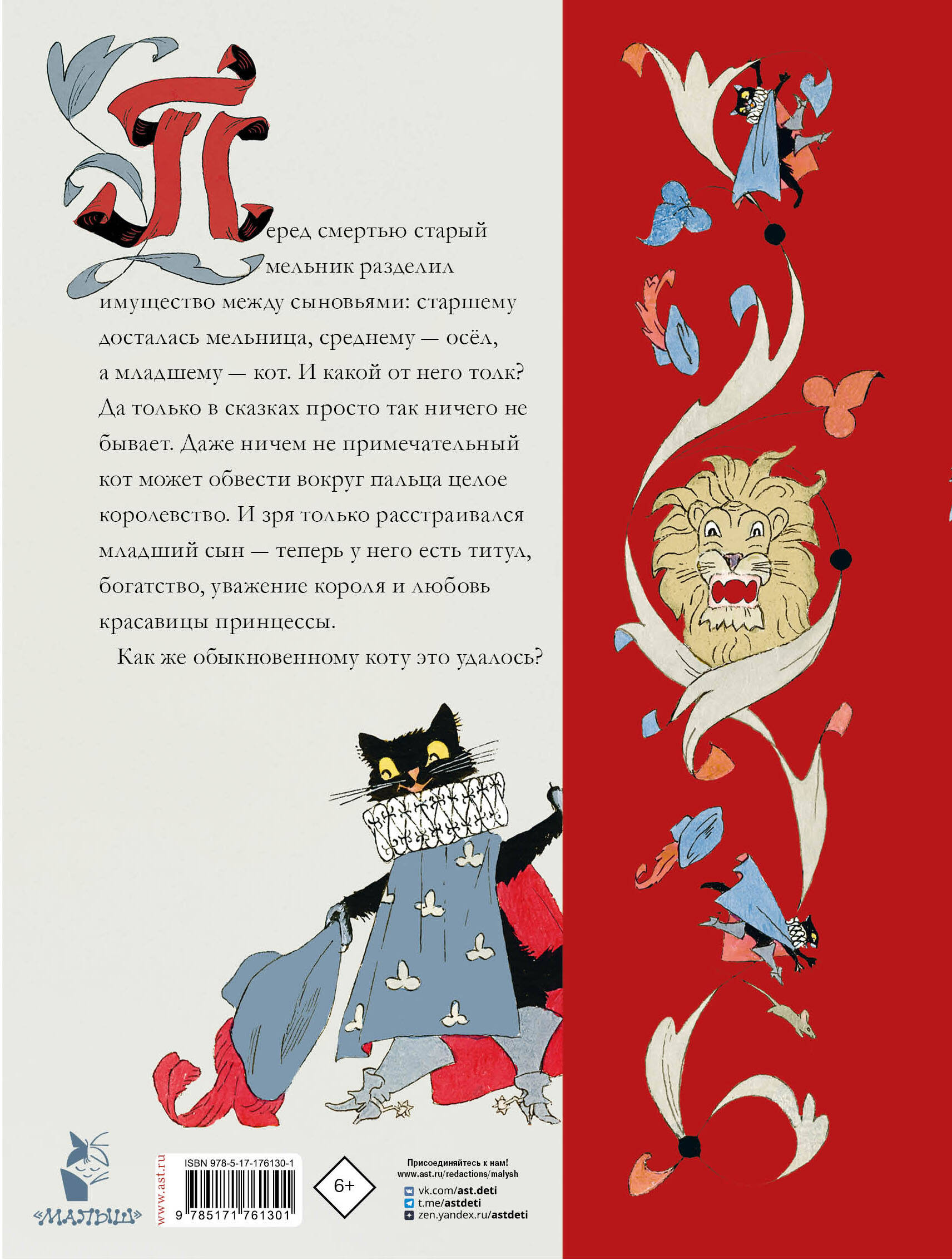 Перед смертью старый мельник разделил имущество между сыновьями: старшему досталась мельница, среднему - осёл, а младшему - кот. И какой от него толк? Да только в сказках просто так ничего не бывает. Даже ничем не примечательный кот может обвести вокруг пальца целое королевство. И зря только расстраивался младший сын - теперь у него есть титул, богатство, уважение короля и любовь красавицы принцессы. Как же обыкновенному коту это удалось?| Издательство | Издательство "АСТ" |