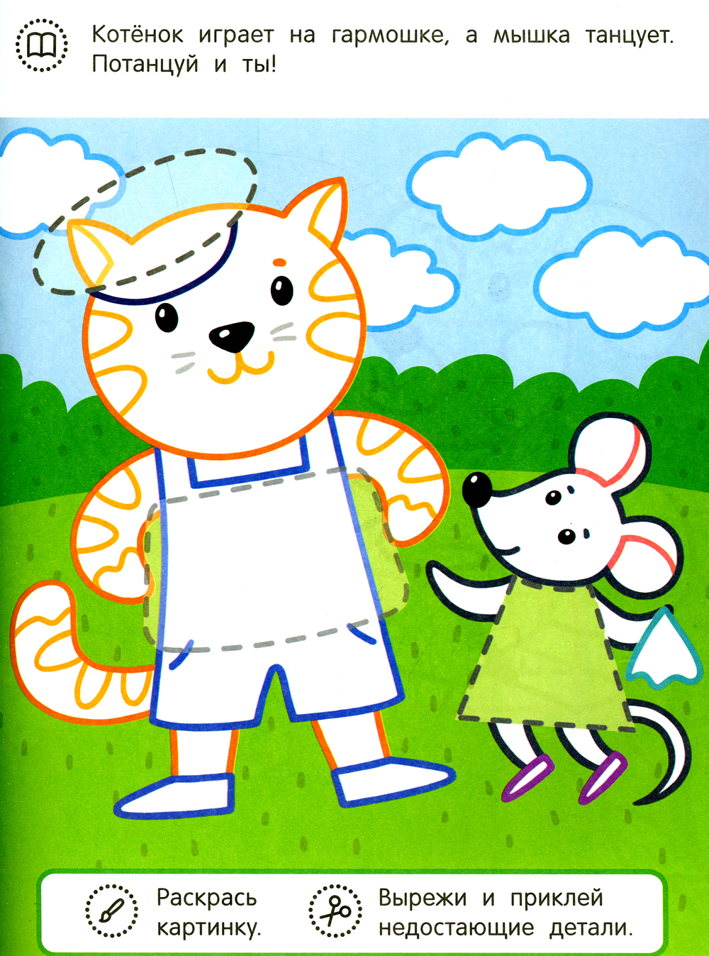 Аннотация: Котенок и его друзья: раскраска с аппликацией