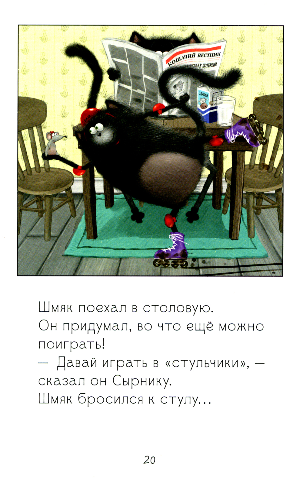 Что делать, если у тебя новые ролики, а на улице, как назло, зарядил дождь? Конечно, устроить гоночную трассу в гостиной! Что из этого вышло - читайте в книге о приключениях котёнка Шмяка и его друга Сырника.| Издательство | Клевер-Медиа-Групп |