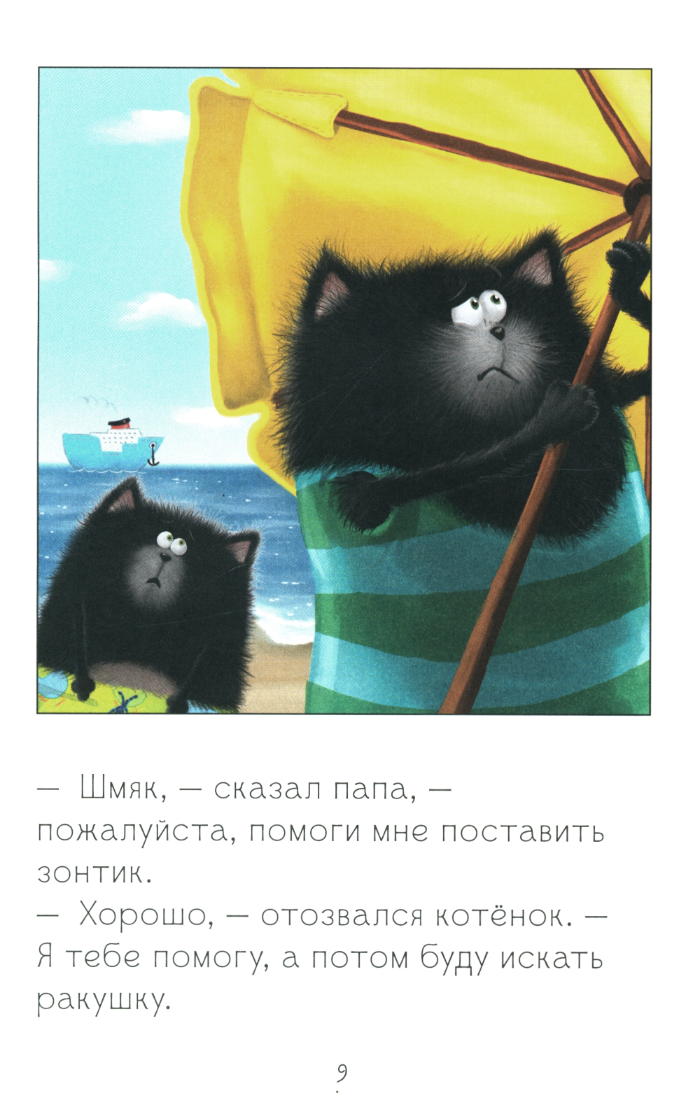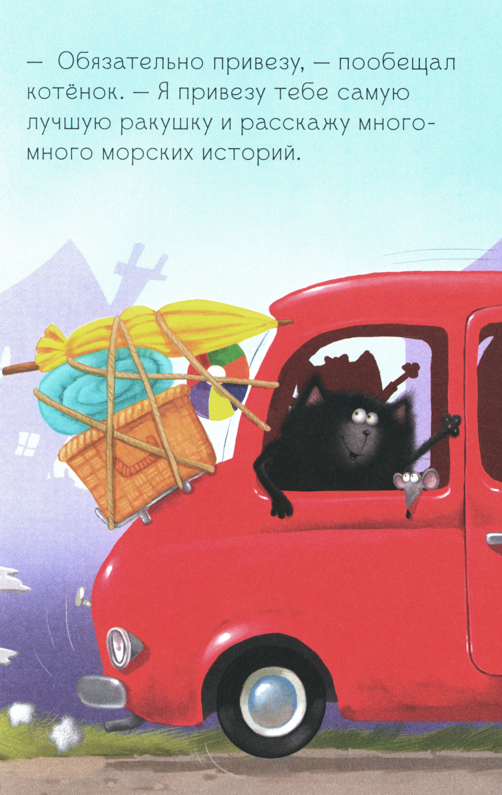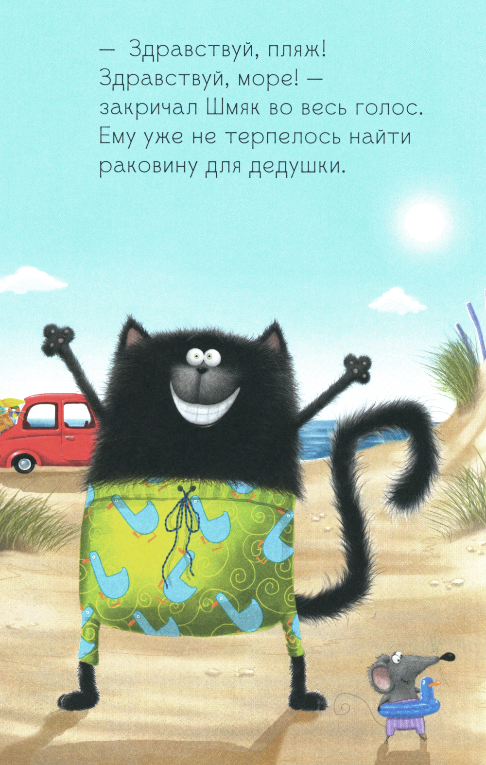 Кошачье семейство отправляется в отпуск. Шмяк мечтает найти ракушку с шумом моря внутри и привезти её дедушке. Но все ракушки на берегу поломаны и разбиты. Неужели любимый дедушка останется без подарка?| Издательство | Клевер-Медиа-Групп |