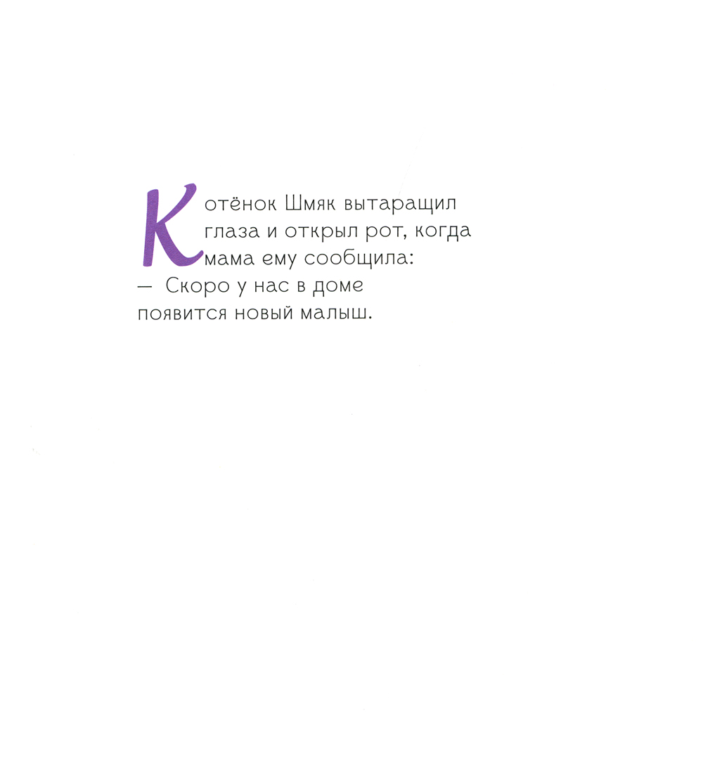 В семье котёнка Шмяка радостное событие - скоро появится малыш. Шмяк ждёт этого с нетерпением и готовится стать старшим братом! Он украсил детскую комнату и достал свои старые игрушки. И вот этот день настал, но... кажется, Шмяка ждёт большой сюрприз!| Издательство | Клевер-Медиа-Групп |