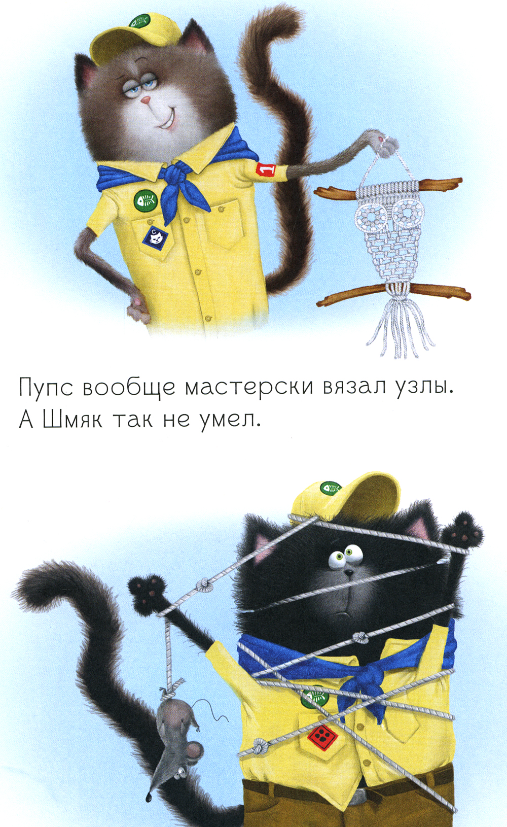 Новый скаут в отряде такой крутой! Он лучше всех умеет разводить огонь и вязать узлы. Вот бы Шмяку стать таким, как он! Котята отправляются в поход. И оказывается, что ловкость и сила - это ещё не всё. Кто позаботился об отряде? Кто помог другу выбраться из беды? Читайте о новых приключениях котёнка Шмяка и его друзей!| Издательство | Клевер-Медиа-Групп |