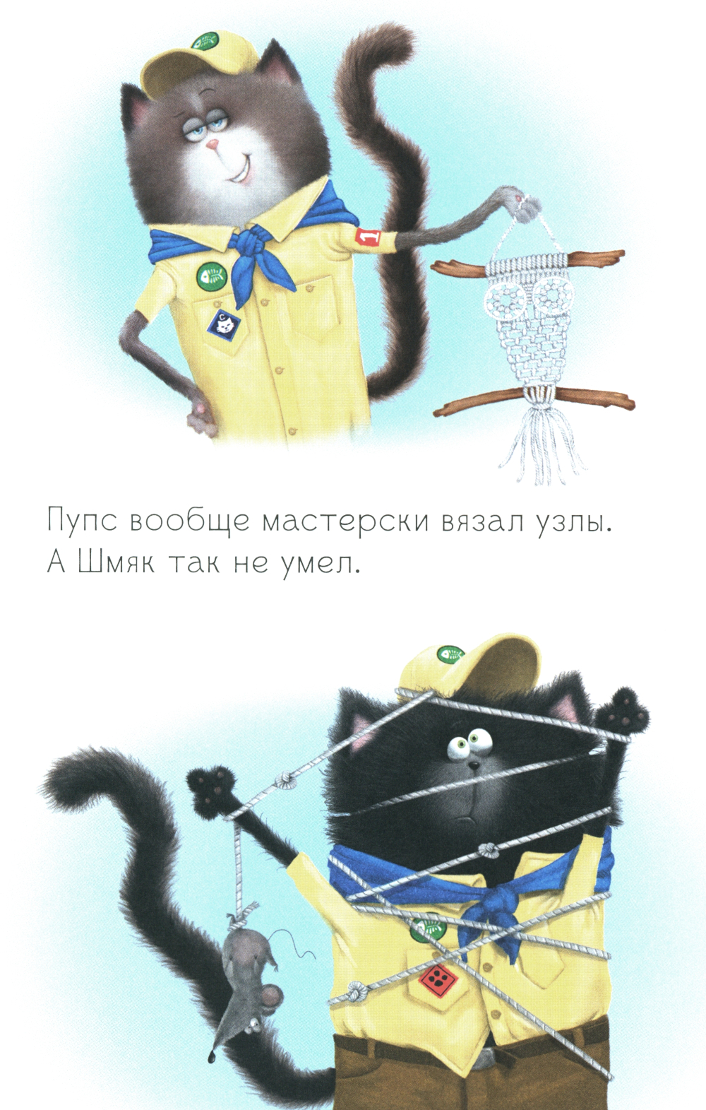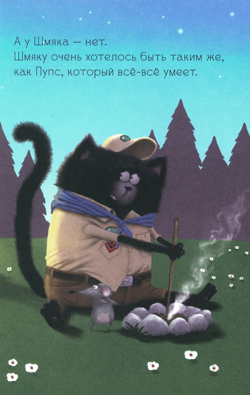 Новый скаут в отряде - такой крутой! Он лучше всех умеет разводить огонь и вязать узлы. Вот бы Шмяку стать таким,как он! Котята отправляются в поход. И оказывается, что ловкость и сила - это ещё не всё. Кто позаботился об отряде? Кто помог другу выбраться из беды? Читайте о новых приключениях котёнка Шмяка и его друзей!