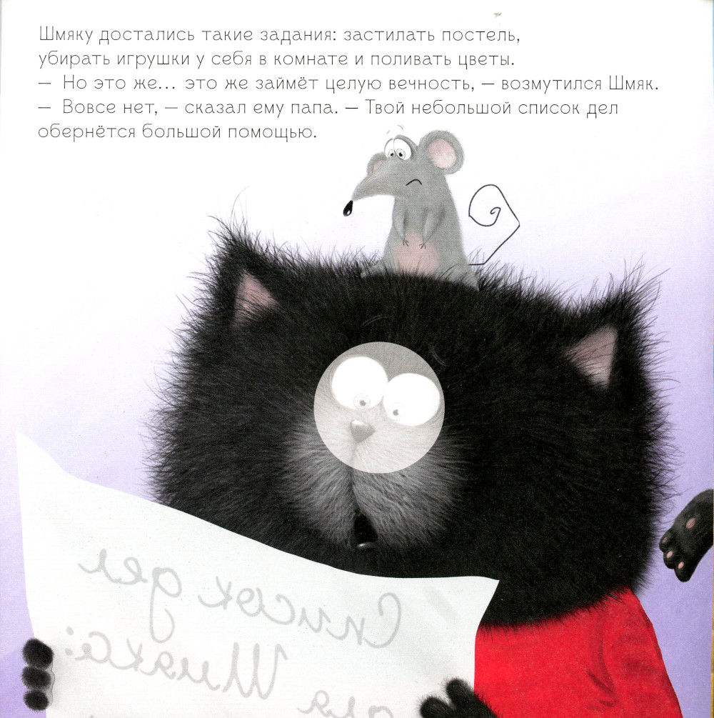 Роб Скоттон - знаменитый художник и писатель, папа умилительного котёнка Шмяка, обожаемого детьми и родителями по всему миру. У котёнка Шмяка сегодня много домашних хлопот: убрать игрушки, застелить постель, полить цветы... Это так скучно! Что же делать? А что, если цветы - это дикие джунгли и надо спасти остров от засухи? А что, если игрушки - это сокровища пиратов, которые нужно спрятать в сундук? Так выполнять домашние поручения гораздо веселее Но справится ли Шмяк? Все дети обожают наклейки, поэтому мы добавили 20 стикеров, которые малыш должен разместить на страничках книги. Читайте, проводите время вместе и веселитесь!