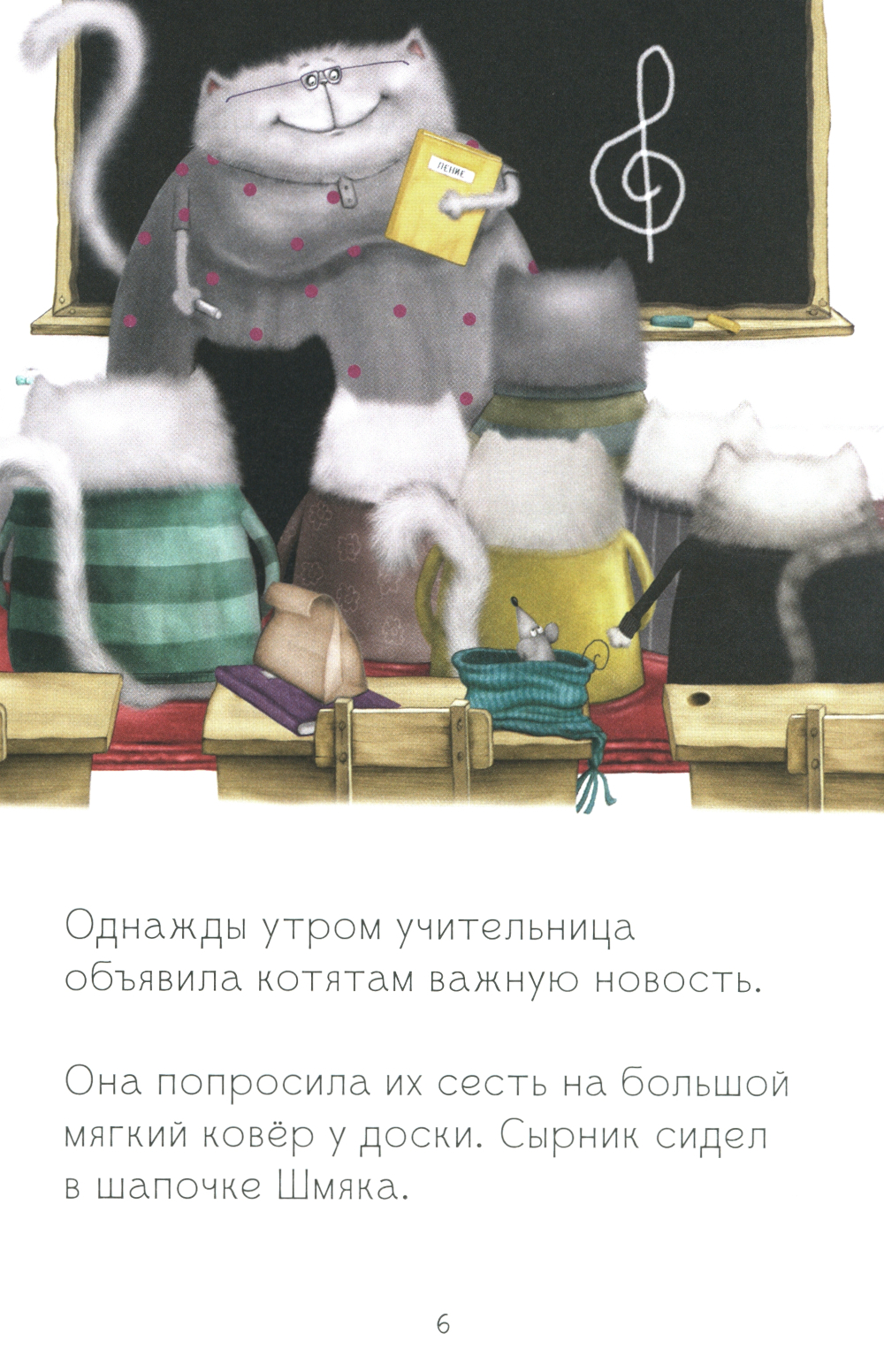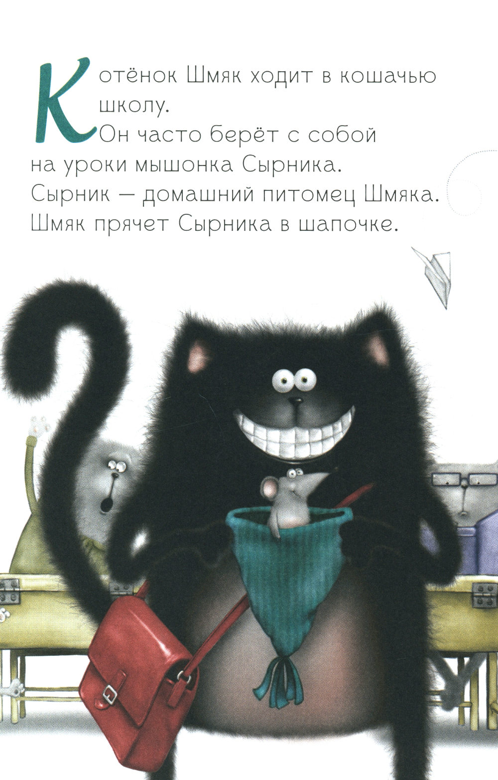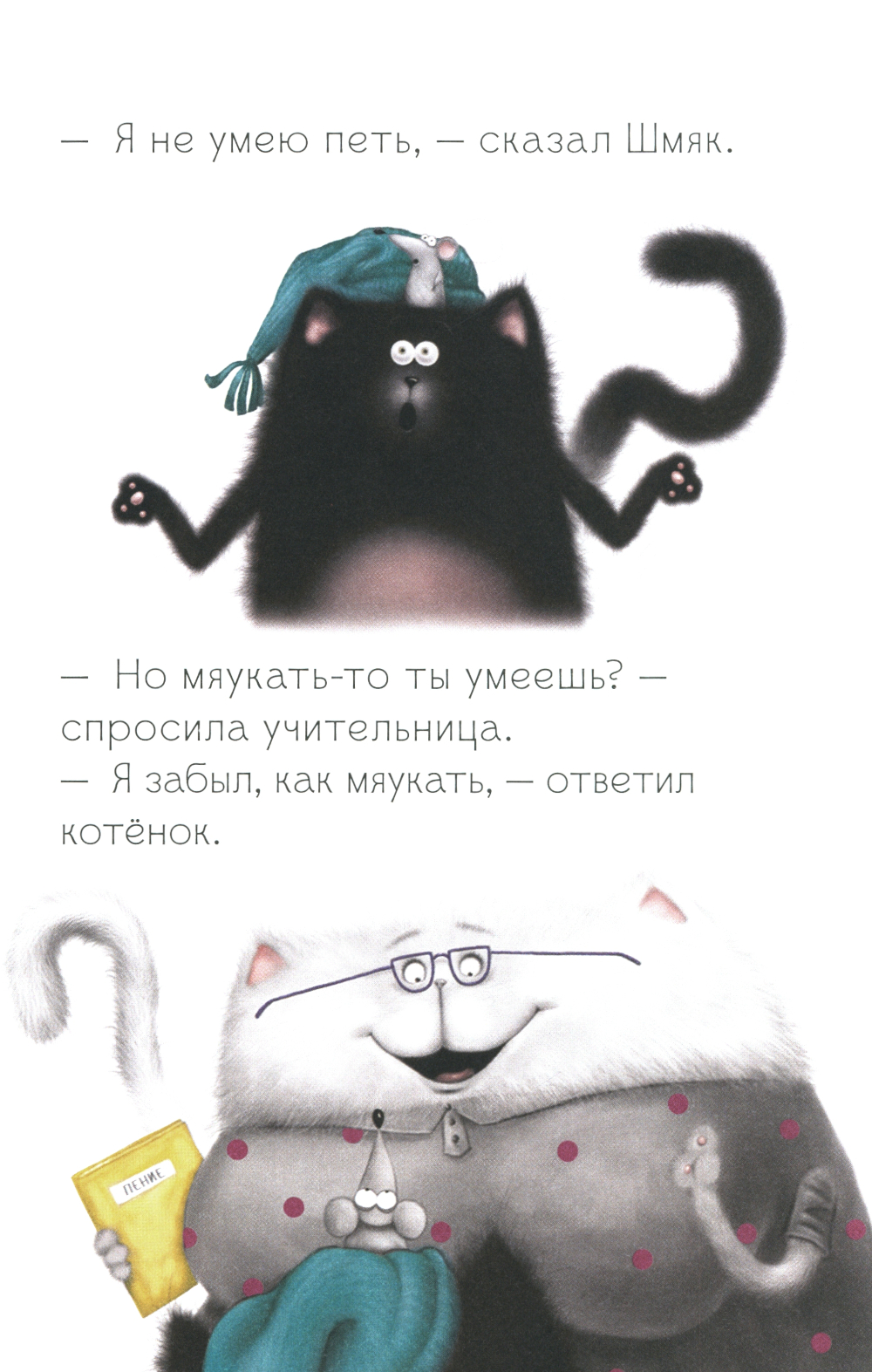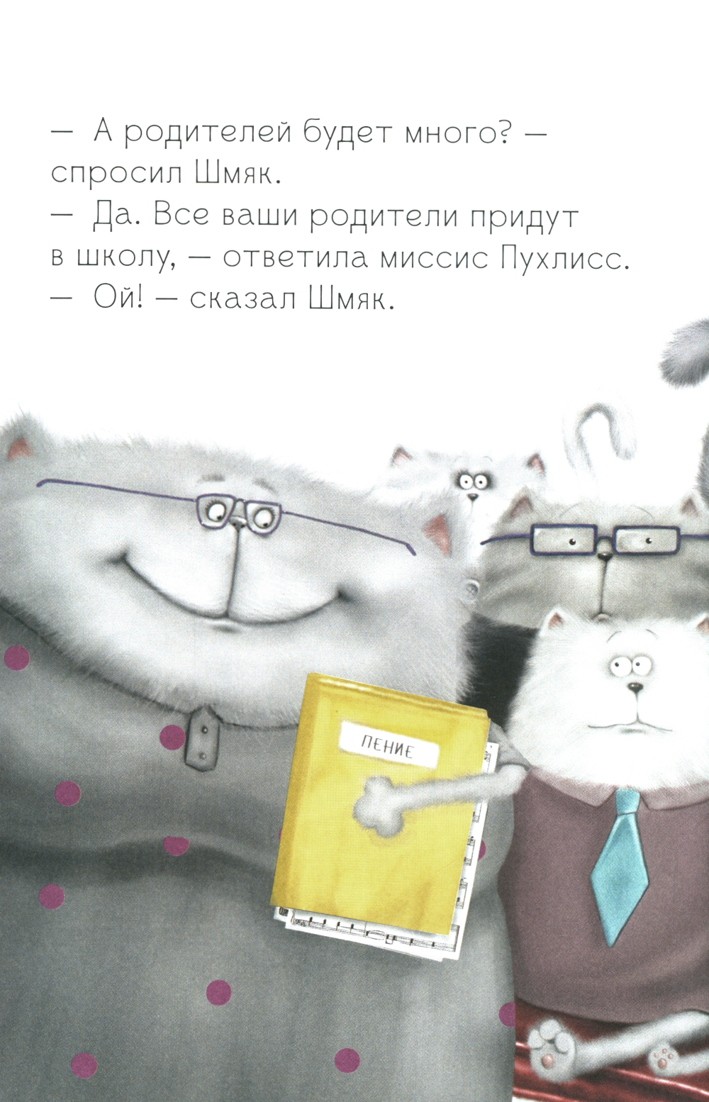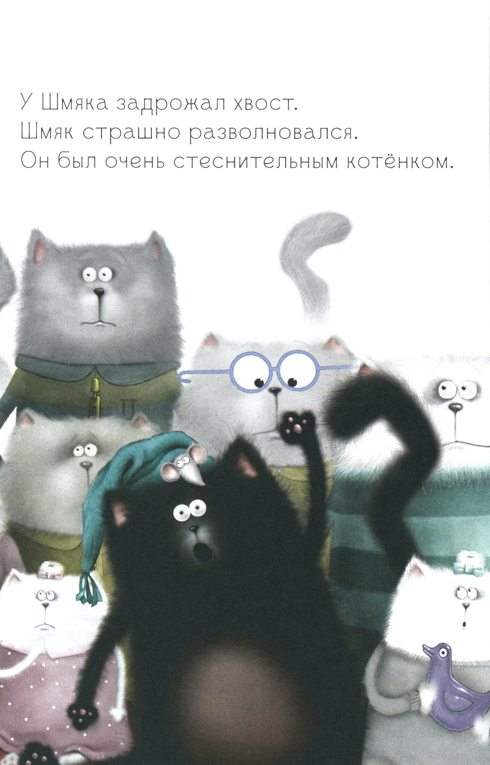 В кошачьей школе скоро День открытых дверей, и учительница объявляет котятам, что они будут петь хором. Шмяк ужасно волнуется. Он стесняется выступать перед публикой, а уж тем более петь! Ему так страшно, что он не может даже мяукнуть! Удастся ли котёнку Шмяку преодолеть страх и сделать так, чтобы родители им гордились?| Издательство | Клевер-Медиа-Групп |