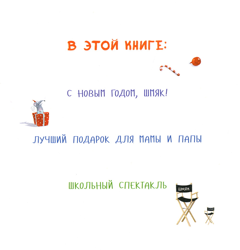 В этом сборнике вы найдёте три праздничные истории про котёнка Шмяка и его друга мышонка Сырника. Вы узнаете, получил ли Шмяк подарок на Новый год от Деда Мороза, что приготовил котёнок для мамы и папы и как прошёл школьный спектакль. Устраивайтесь поудобнее и наслаждайтесь чтением вместе!| Издательство | Клевер-Медиа-Групп |