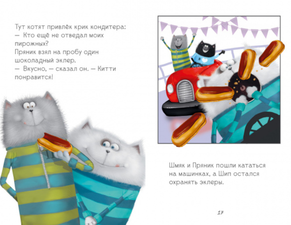 Шмяк и его друзья Шип и Пряник собрались в парк. А Китти не может пойти с ними, она сломала лапку... Шмяк, Шип и Пряник пошли одни, но пообещали что-нибудь принести подружке, ведь друзья всегда поддерживают друг друга. Можно принести ей шоколадные эклеры. Ой, их уже съел Шип! Чем же друзья порадуют Китти?| Издательство | Клевер-Медиа-Групп |