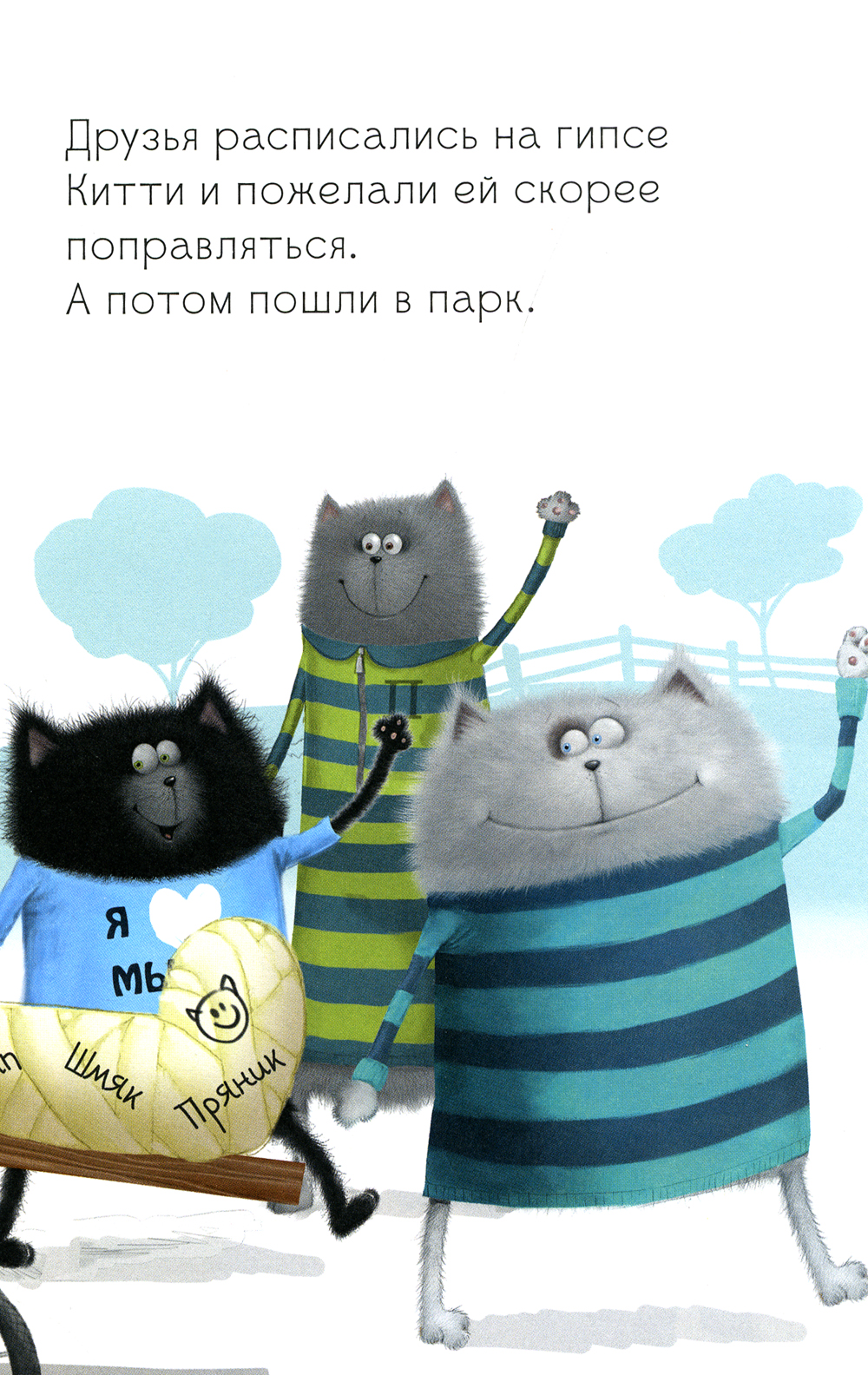 Шмяк и его друзья Шип и Пряник собрались в парк. Я Китти не может пойти с ними, она сломала лапку... Шмяк, Шип и Пряник пошли одни, но пообещали что-нибудь принести подружке, ведь друзья всегда поддерживают друг друга. Пожно принести ей шоколадные эклеры. Ой, их уже съел Шип! Чем же друзья порадует Китти?| Издательство | Клевер-Медиа-Групп |