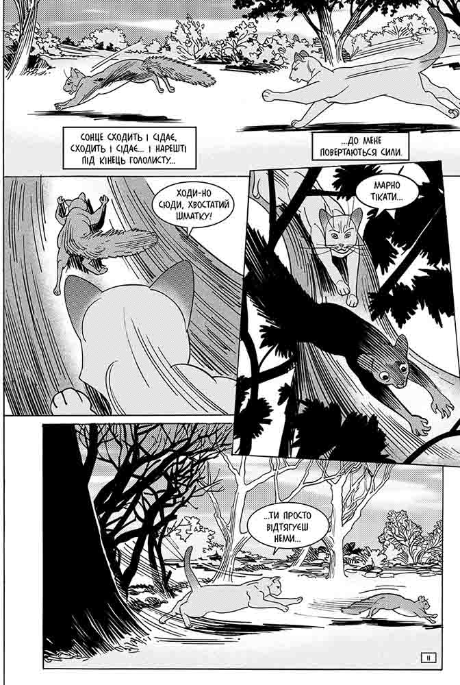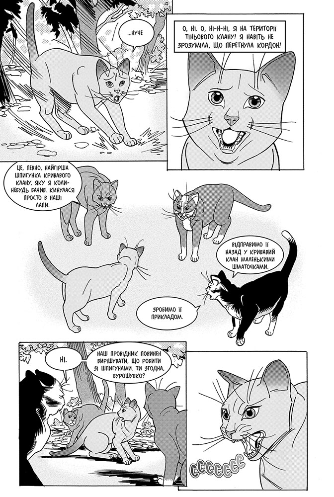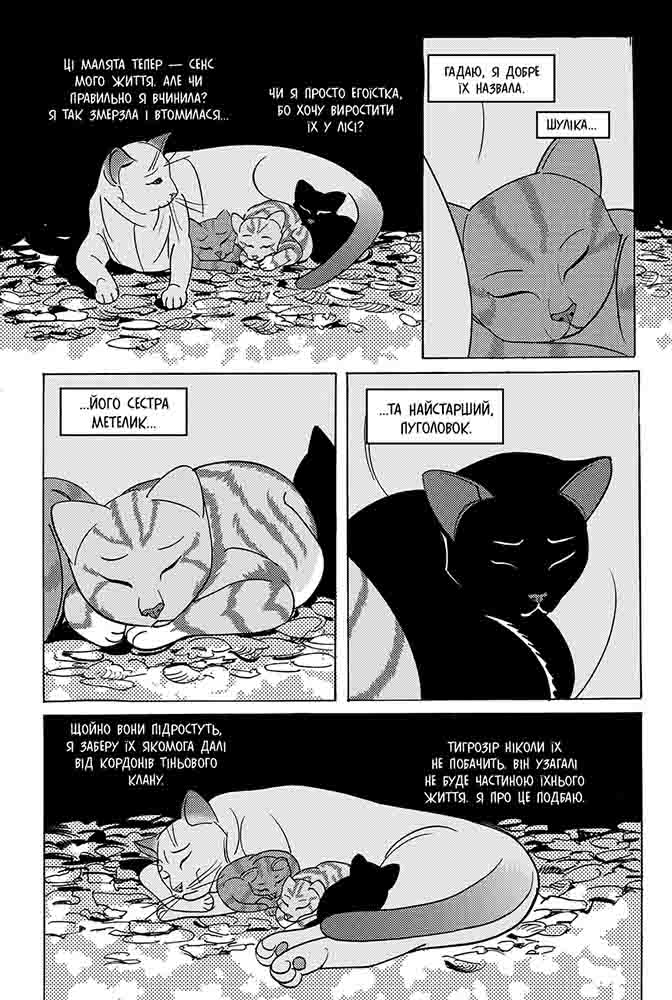 Світовий бестселер від Ерін Гантер - тепер у манґах! Саші весь час сниться Тигрозір. Попри страх, що він дізнається про кошенят і захоче їх забрати, молода самітниця повертається до лісу. Найголовніше - виростити малечу. Із настанням зимного гололиста Саші дедалі важче годувати родину. Може, кошенятам таки краще пристати до Клану, який їх захистить і навчить виживати? Може, саме тоді вони будуть у безпеці? Але в малечі власні плани - кошенята вирушають у місто Двоногів. І що з усього цього вийде - невідомо. Чому варто прочитати: Серія пригодницьких романів-фентезі, які читають підлітки та їх батьки. Книги серії мають поціновувачів в Англії, США, Німеччині, Франції, Іспанії, Італії, Польщі, Чехії, Японії, Китаї… - понад 30 000 000 читачів й фанів у всьому світі! Автор: Серія «Коти-вояки» створена британськими письменницями Кейт Кері, Черіт Болдрі, Тай Сазерленд у співавторстві з редактором Вікторією Голмс під загальним псевдонімом Ерін Гантер. Офіційний сайт «Котів-вояків»: www.warriors.com.ua