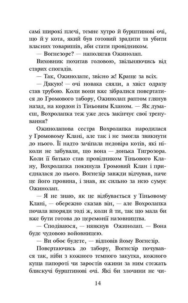 СВІТОВИЙ БЕСТСЕЛЕР Спеціальне видання серії світового бестселера «Коти-вояки». Після жорстокої битви із Кривавим Кланом минула вже не одна повня, і в лісі нарешті запанували мир та спокій. Вогнезір із головою поринає у провідництво і робить усе можливе, щоб зміцнити Громовий Клан. Але несподівано в його життя вриваються тіні минулого. Загадкові примарні коти не дають йому спокою ні вдень, ні вночі. Про що вони благають? Куди кличуть? Аби дізнатися правду, Вогнезір має вирушити в небезпечну подорож, яка переверне з лап на голову не тільки його власне життя, але й життя усіх лісових Кланів. Переклад з англійської - Катерина Дудка, Остап Українець. Оформлення - Олег Панченко. При перекладі тексту українською для опису загального устрою котячих кланів та громадянства їхніх членів була використана термінологія Національної скаутської організації України «Пласт». Подарунок - фірмовий колекційний котомагніт. Чому варто читати: Продовження пригодницької серії про вже знайомих читачам котів-вояків. Книги серії мають поціновувачів в Англії, США, Німеччині, Франції, Іспанії, Італії, Польщі, Чехії, Японії, Китаї… - понад 30 000 000 читачів й фанів у всьому світі! Автор: Серія «Коти-вояки» створена британськими письменницями Кейт Кері, Черіт Болдрі, Тай Сазерленд у співавторстві з редактором Вікторією Голмс під загальним псевдонімом Ерін Гантер. Серія видається у Великій Британії з 2003 року і дотепер. Вона потрапила до списку світових бестселерів за версією «Нью-Йорк Таймс» і стала популярною у багатьох країнах світу. Офіційний сайт «Котів-вояків»: www.warriors.com.ua| Серия | , |