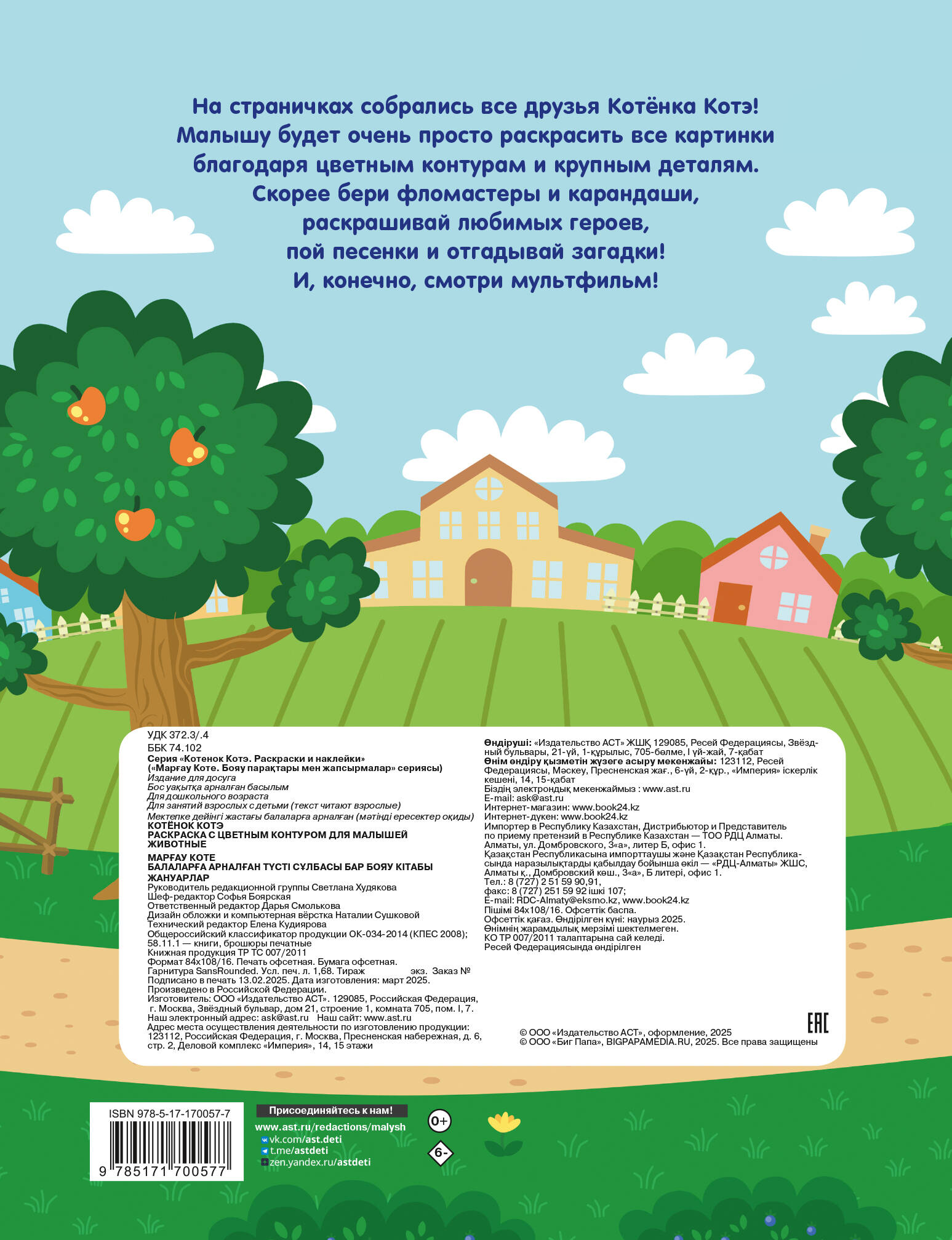 Аннотация: Котёнок Котэ. Раскраска с цветным контуром для малышей. Животные