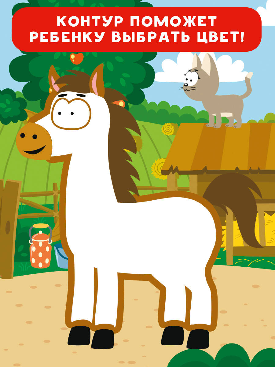 Котёнок Котэ. Раскраска с цветным контуром для малышей. Животные