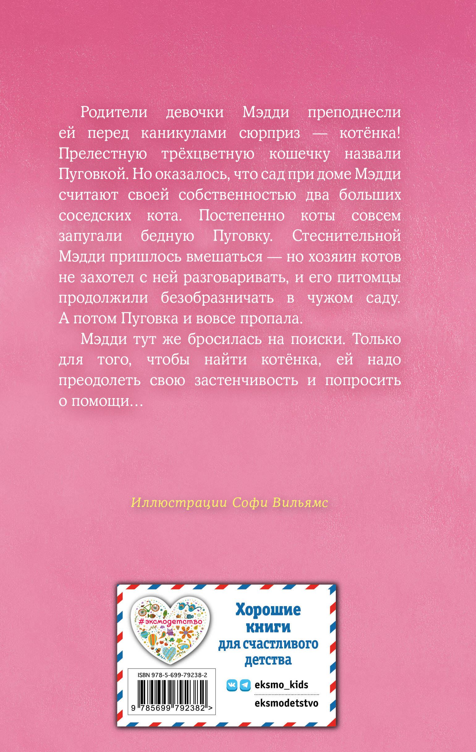 Родители девочки Мэдди преподнесли ей перед каникулами сюрприз - котёнка! Прелестную трёхцветную кошечку назвали Пуговкой. Но оказалось, что сад при доме Мэдди считают своей собственностью два больших соседских кота. Постепенно коты совсем запугали бедную Пуговку. Стеснительной Мэдди пришлось вмешаться - но хозяин котов не захотел с ней разговаривать, и его питомцы продолжили безобразничать в чужом саду. А потом Пуговка и вовсе пропала. Мэдди тут же бросилась на поиски. Только для того, чтобы найти котёнка, ей надо преодолеть свою застенчивость и попросить о помощи… Это история про смелость! Её надо найти в себе девочке Мэдди, чтобы помочь своей любимице! Серия-бестселлер! Книги Холли Вебб бережно учат чуткости, любви, доброте и ответственности. Внутри издания достаточно крупный шрифт и потрясающей красоты чёрно-белые иллюстрации, которые позволят детям переключать внимание, не нагружая чрезмерно глаза. Идеально для родителей, которые хотят, чтобы дети втянулись в чтение.| Издательство | ООО "Издательство "Эксмо" |