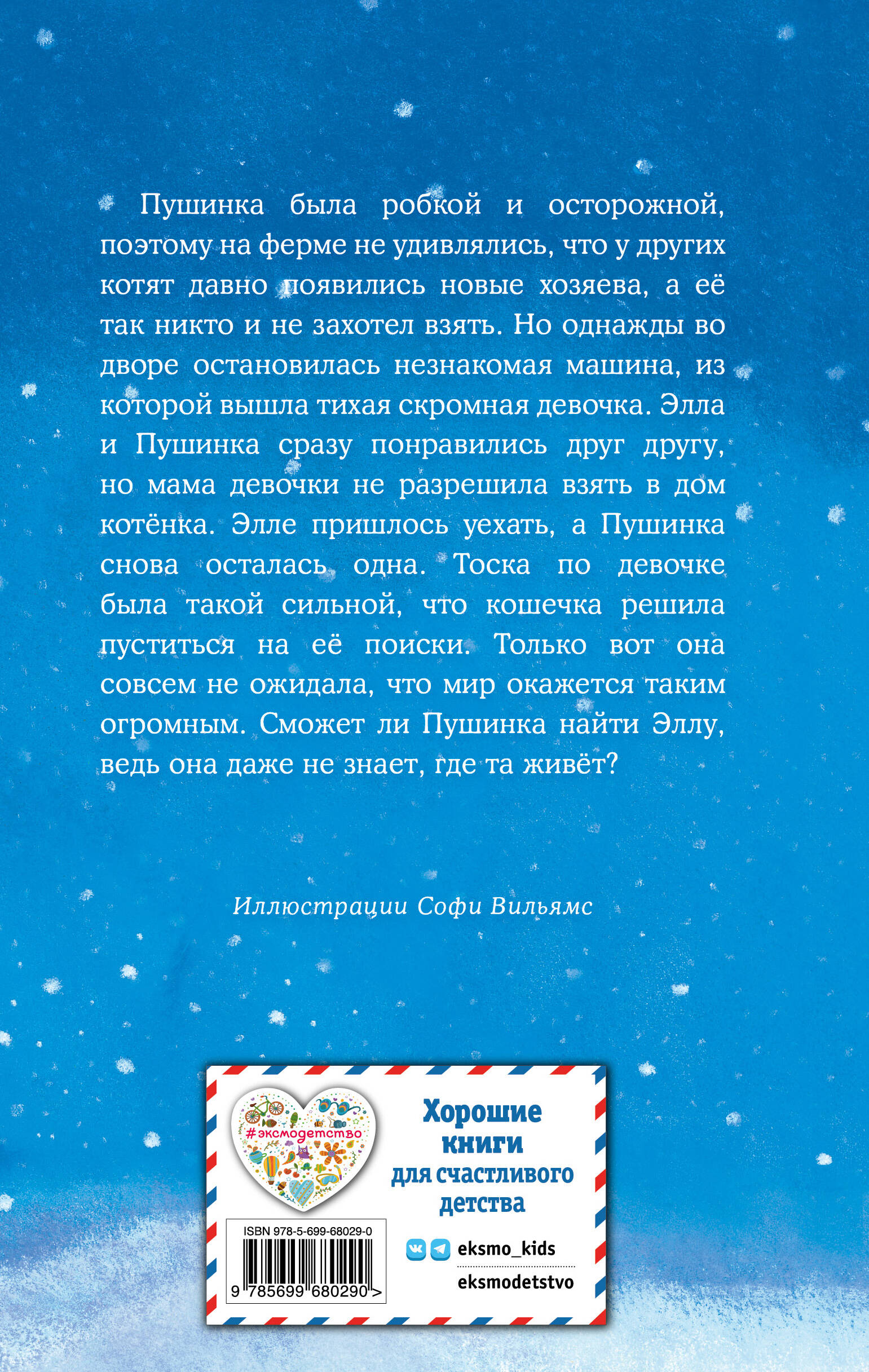 Бывает ли дружба с первого взгляда? Разумеется, бывает! И пусть эта дружба между девочкой и котёнком… Книги Холли Вебб всегда мудрые, поучительные без назидания и очень жизнеутверждающие (а ещё в них всё всегда заканчивается замечательно!). Поэтому Холли Вебб популярна во всем мире, но особенно её полюбили в России, где книги писательницы продаются миллионными тиражами. Серия «Добрые зверята» неизменно входит в списки бестселлеров. Множество родителей рассказывают, что их дети просто влюбились в эти истории и начали сами читать. Книга издана на белой бумаге, внутри достаточно крупный шрифт и потрясающей красоты чёрно-белые иллюстрации, которые позволят детям переключать внимание, не нагружая чрезмерно глаза.| Издательство | ООО "Издательство "Эксмо" |