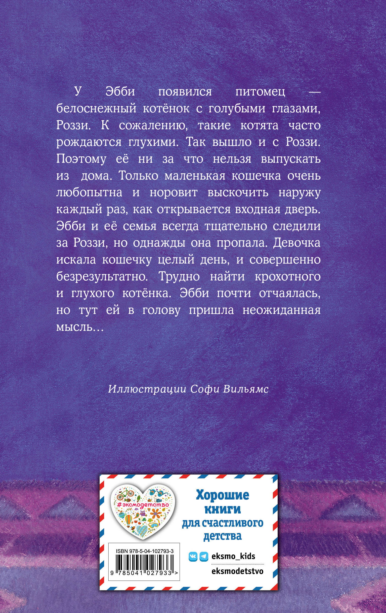 У Эбби есть мама, папа, младшая сестрёнка и Роззи. Роззи - это прелестная маленькая кошечка с белоснежным мехом и голубыми глазами. Она постоянно находит приключения, и Эбби приходится её спасать - то снимать с карниза со шторами, то вытаскивать из бака с грязным бельем. Дело осложняется тем, что Роззи - глухая, поэтому может не услышать опасность. А однажды Роззи бесследно исчезла. Эбби и её родители решили, что она выбежала на улицу. Девочке очень страшно - маленький глухой котёнок, который ни разу в жизни не выходил на улицу… А ведь Роззи их даже не услышит. Но тут Эбби озарило - есть ещё способ показать Роззи, где её дом! Это история про ответственность! И ещё - про неусыпную бдительность! Как же иначе, если твой котёнок - глухой? Серия-бестселлер. Книга издана на белой бумаге, внутри достаточно крупный шрифт и потрясающей красоты чёрно-белые иллюстрации, которые позволят детям переключать внимание, не нагружая чрезмерно глаза. Идеальна для родителей, которые хотят, чтобы дети втянулись в чтение.| Издательство | ООО "Издательство "Эксмо" |
