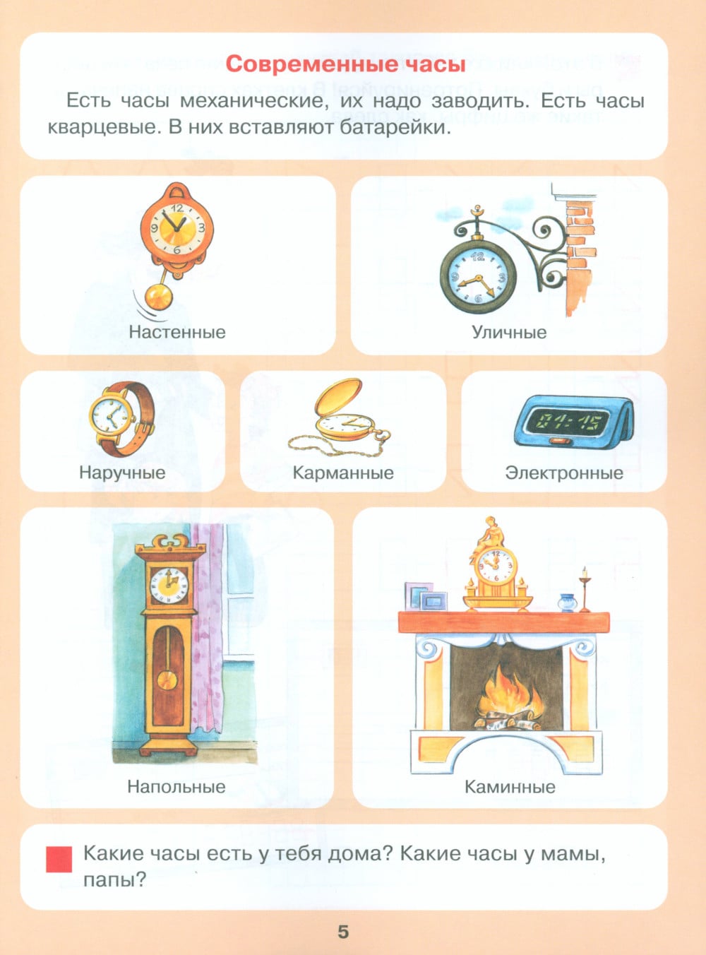 Книга рассчитана на детей 5-7 лет, которые готовятся к поступлению в школу. Предлагаемые в книге задания помогут дошкольникам научиться не только определять время по часам, но и анализировать, сравнивать, делать обобщающие выводы и выражать их в речи. Книга ориентирована на развитие у детей познавательного интереса, мышления, внимания, памяти, творческих способностей, мелкой моторики. Рекомендуется широкому кругу специалистов, работающих с детьми старшего дошкольного возраста, - воспитателям, педагогам дополнительного образования, учителям, гувернёрам. Книга будет полезна и родителям, которые хотят подготовить ребёнка к школе.| Издательство | Просвещение |