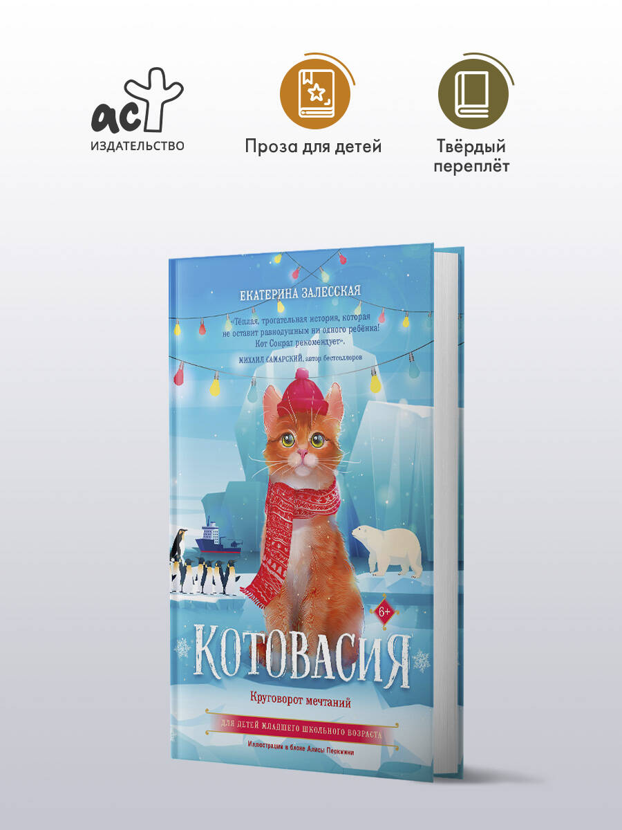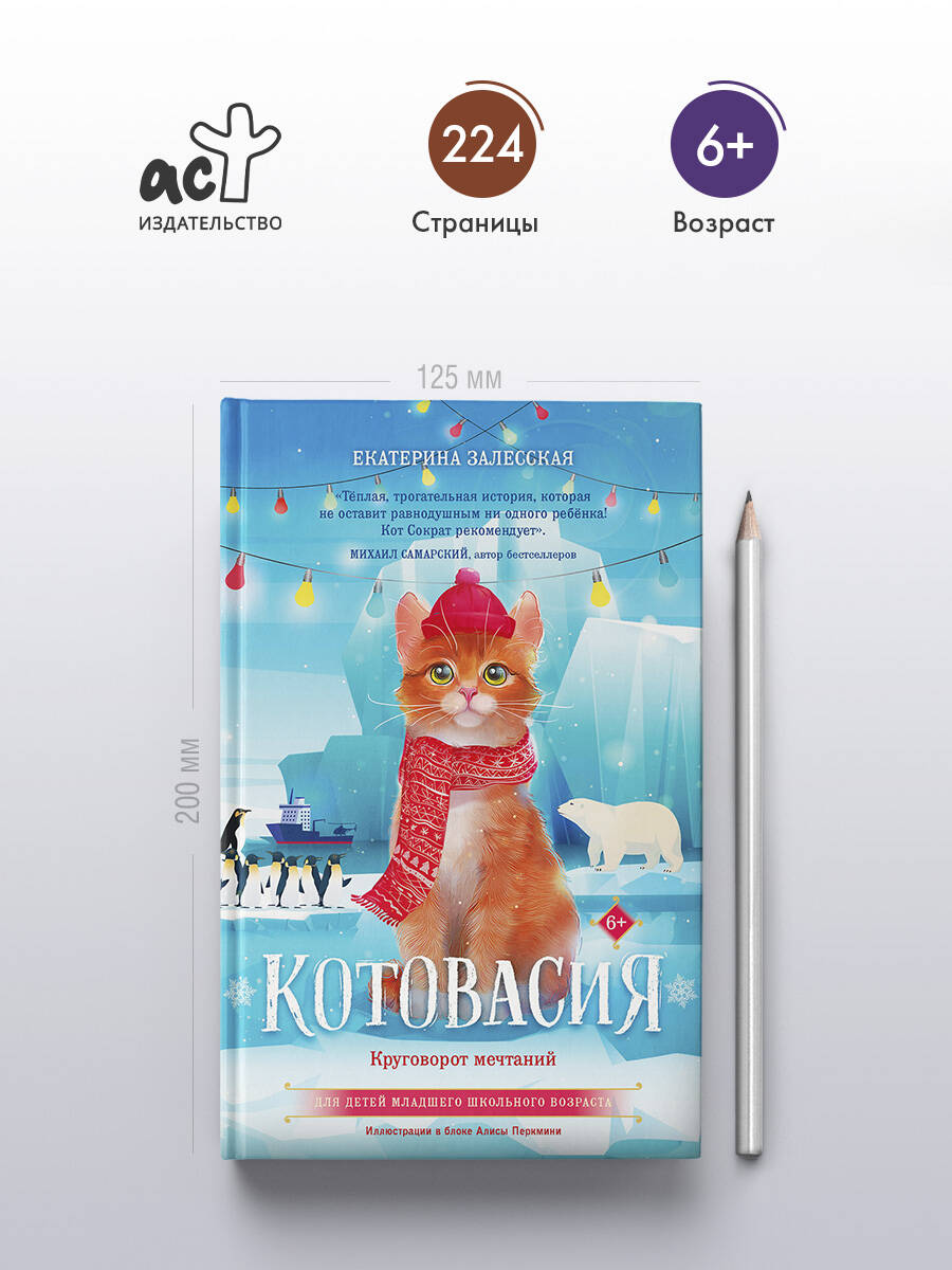 - Зимние приключения котиков - новая книга из цикла «Котовасия» с иллюстрациями. - Добрая книга про пушистых и усатых котиков в канун Нового года! - Трогательная и познавательная книга для детей младшего школьного возраста. - Понравится всем поклонникам Михаила Самарского. Кот Сократ рекомендует! - Автор затрагивает такие важные темы, как: дружба, взаимопомощь, благотворительность, искренность, помощь ближним и важность семейных ценностей. - Сборник уютных и добрых историй идеально подойдет для чтения перед сном вместе с ребенком. - В конце книги читателей ждёт новогодний сюрприз: чек-лист с веселыми и добрыми заданиями.| Издательство | Издательство "АСТ" |