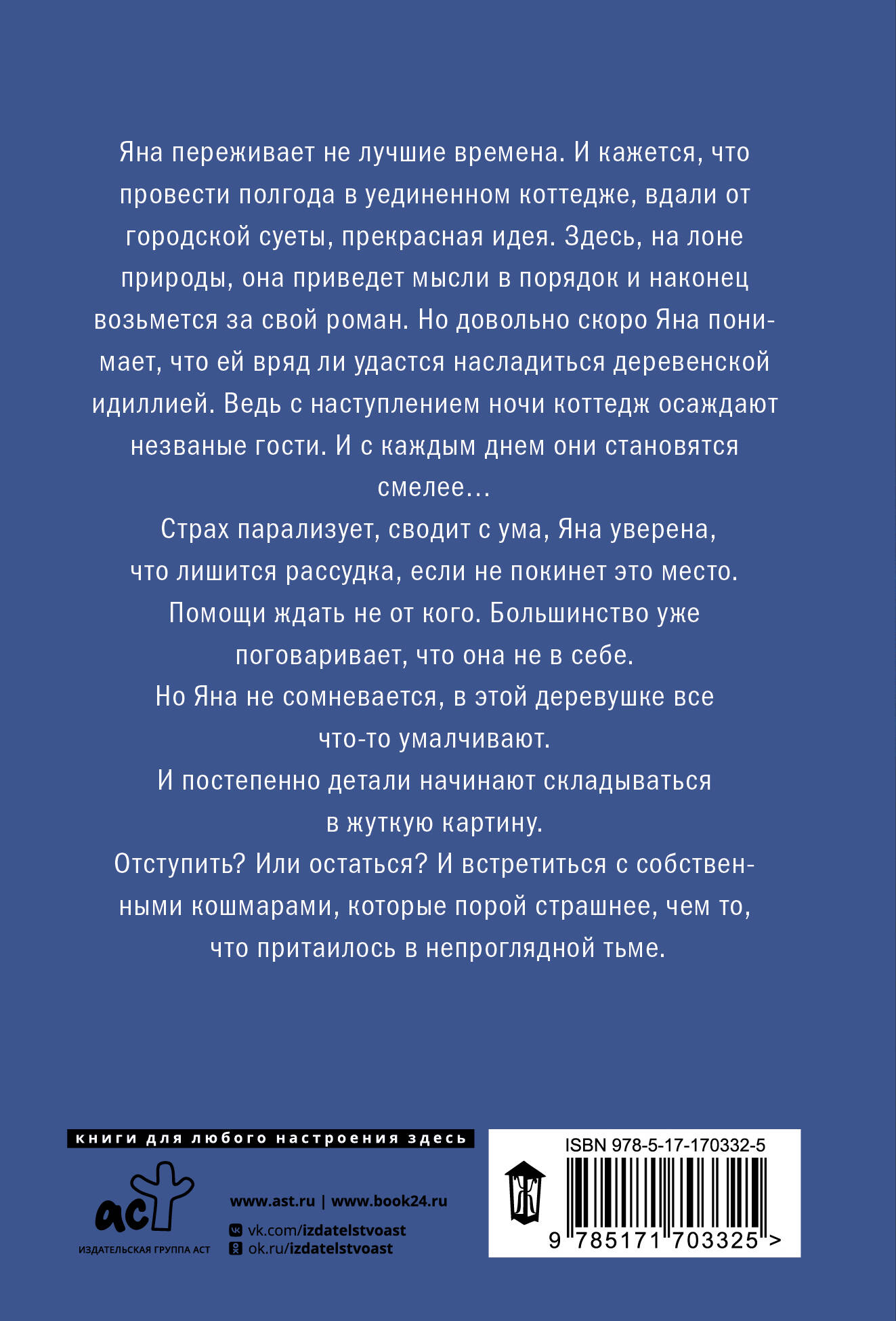 Яна переживает не лучшие времена. И поначалу ей кажется, что провести полгода в уединенном коттедже, вдали от городской суеты, прекрасная идея. Здесь, на лоне природы, она приведет мысли в порядок и наконец возьмется за свой роман. Но довольно скоро Яна понимает, что ей вряд ли удастся насладиться деревенской идиллией. Ведь с наступлением ночи коттедж осаждают незваные гости. И с каждым днем они становятся смелее… Страх парализует, сводит с ума, Яна уверена, что лишится рассудка, если не покинет этом место. Помощи ждать не от кого. Большинство уже поговаривает, что она не в себе. Но Яна не сомневается, что в этой деревушке все что-то умалчивают. И постепенно детали начинают складываться в жуткую картину. Отступить? Или остаться? И встретиться с собственными кошмарами, которые порой страшнее, чем то, что притаилось в непроглядной тьме.