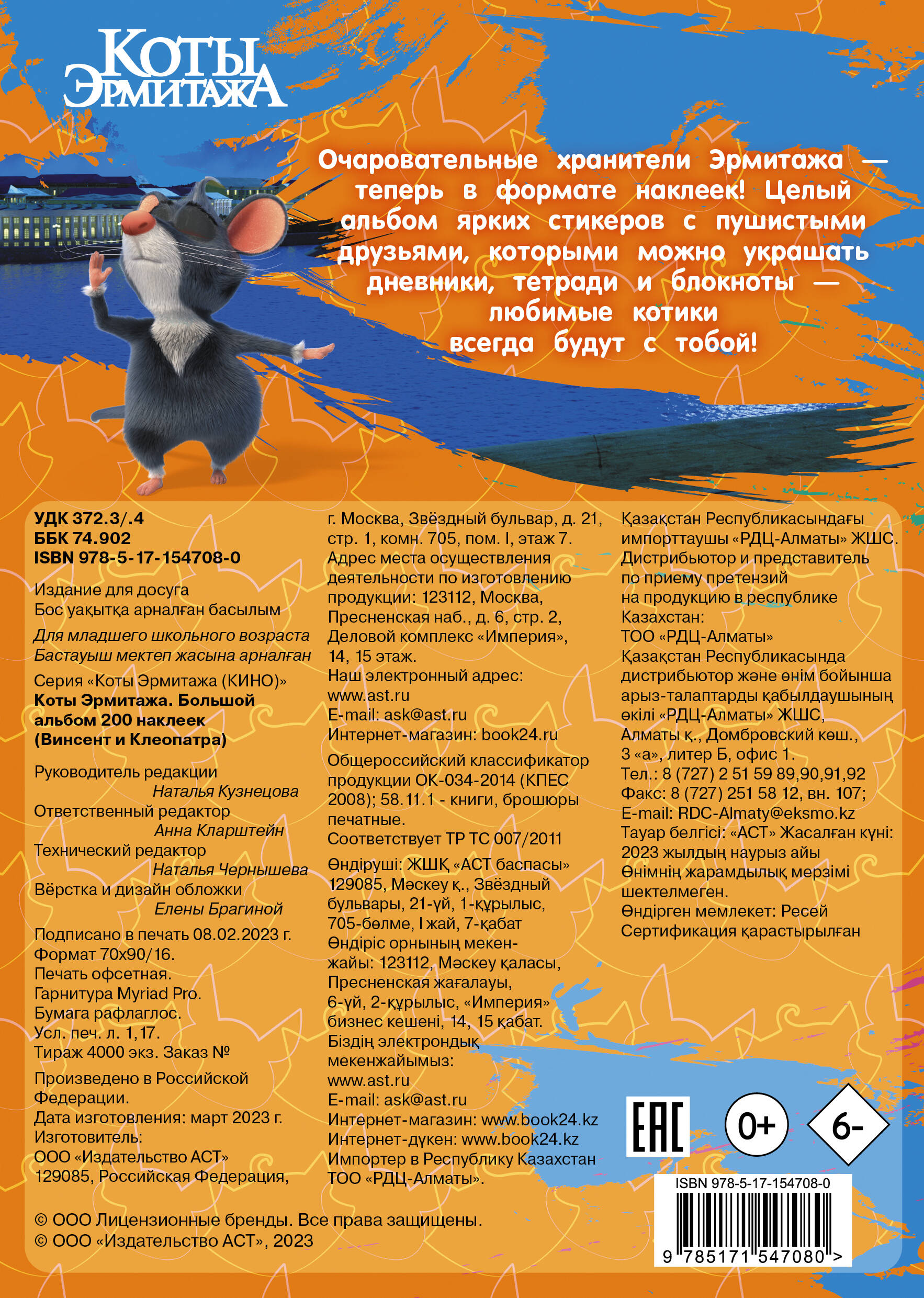 Очаровательные хранители Эрмитажа - теперь в формате наклеек! Целый альбом ярких стикеров с пушистыми друзьями, которыми можно украшать дневники, тетради и блокноты - любимые котики всегда будут с тобой!| Издательство | ИЗДАТЕЛЬСТВО "АСТ" |