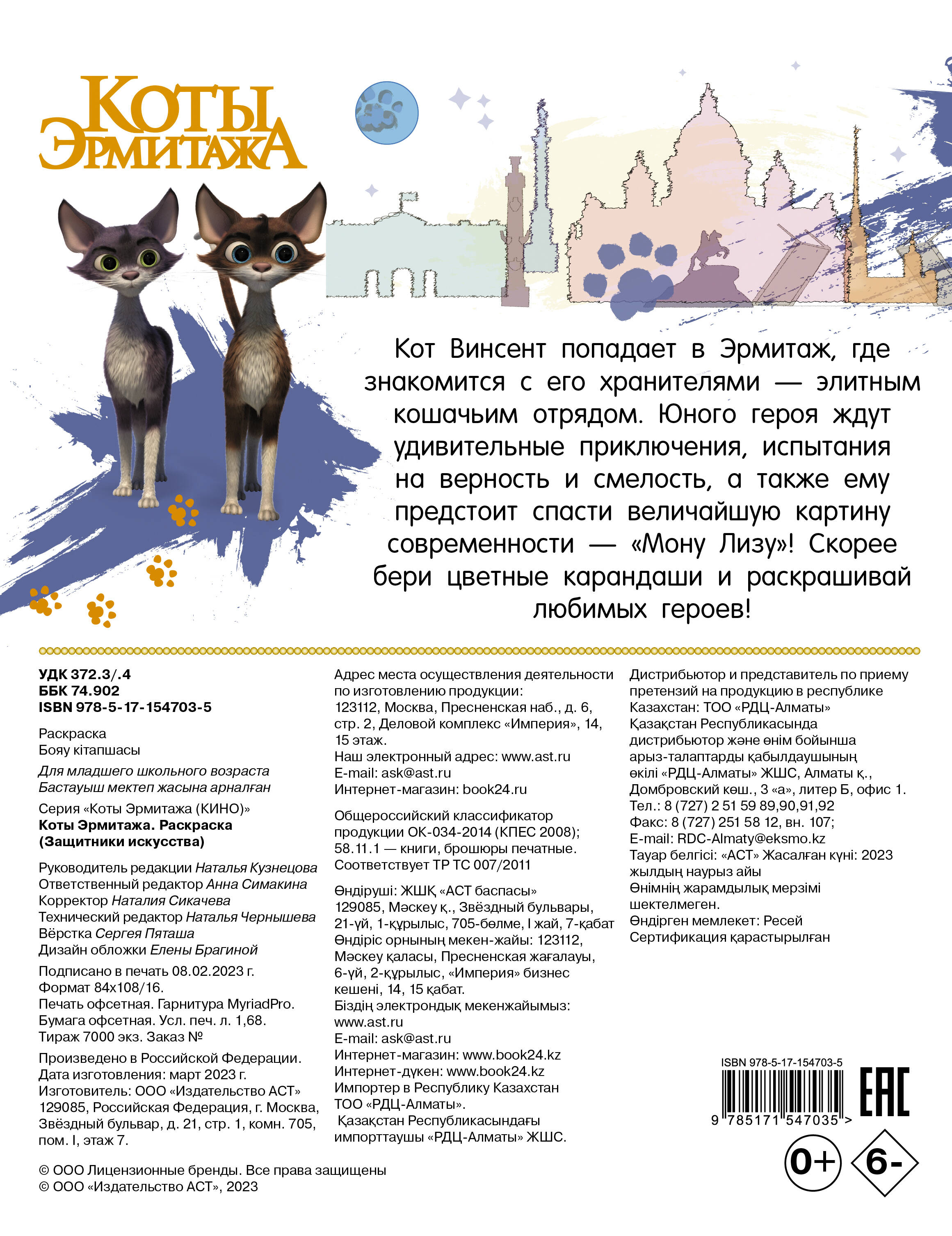 Кот Винсент попадает в Эрмитаж, где знакомится с его хранителями - элитным кошачьим отрядом. Юного героя ждут удивительные приключения, испытания на верность и смелость, а также ему предстоит спасти величайшую картину современности - "Мону Лизу"! Скорее бери цветные карандаши и раскрашивай любимых героев!| Издательство | ИЗДАТЕЛЬСТВО "АСТ" |