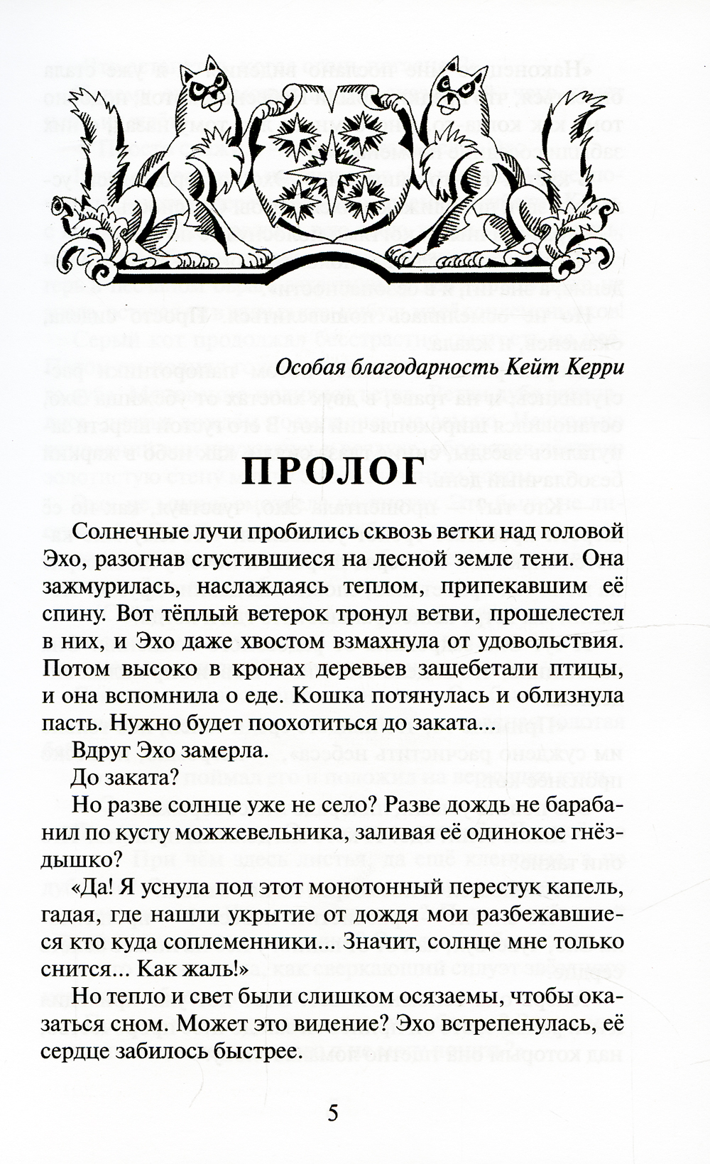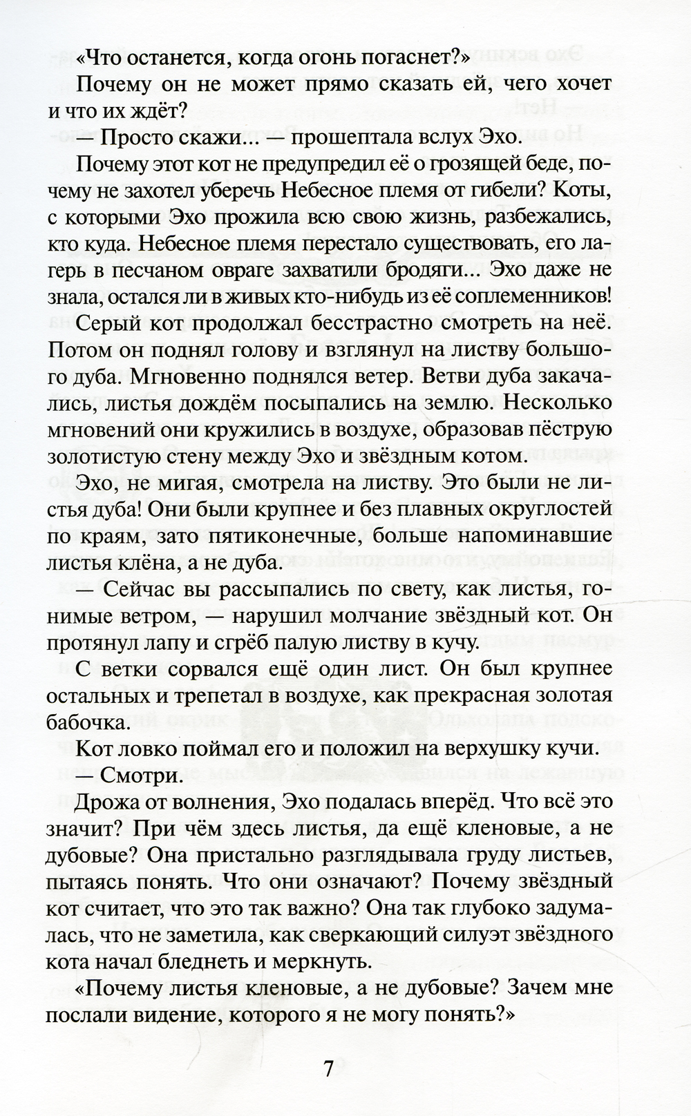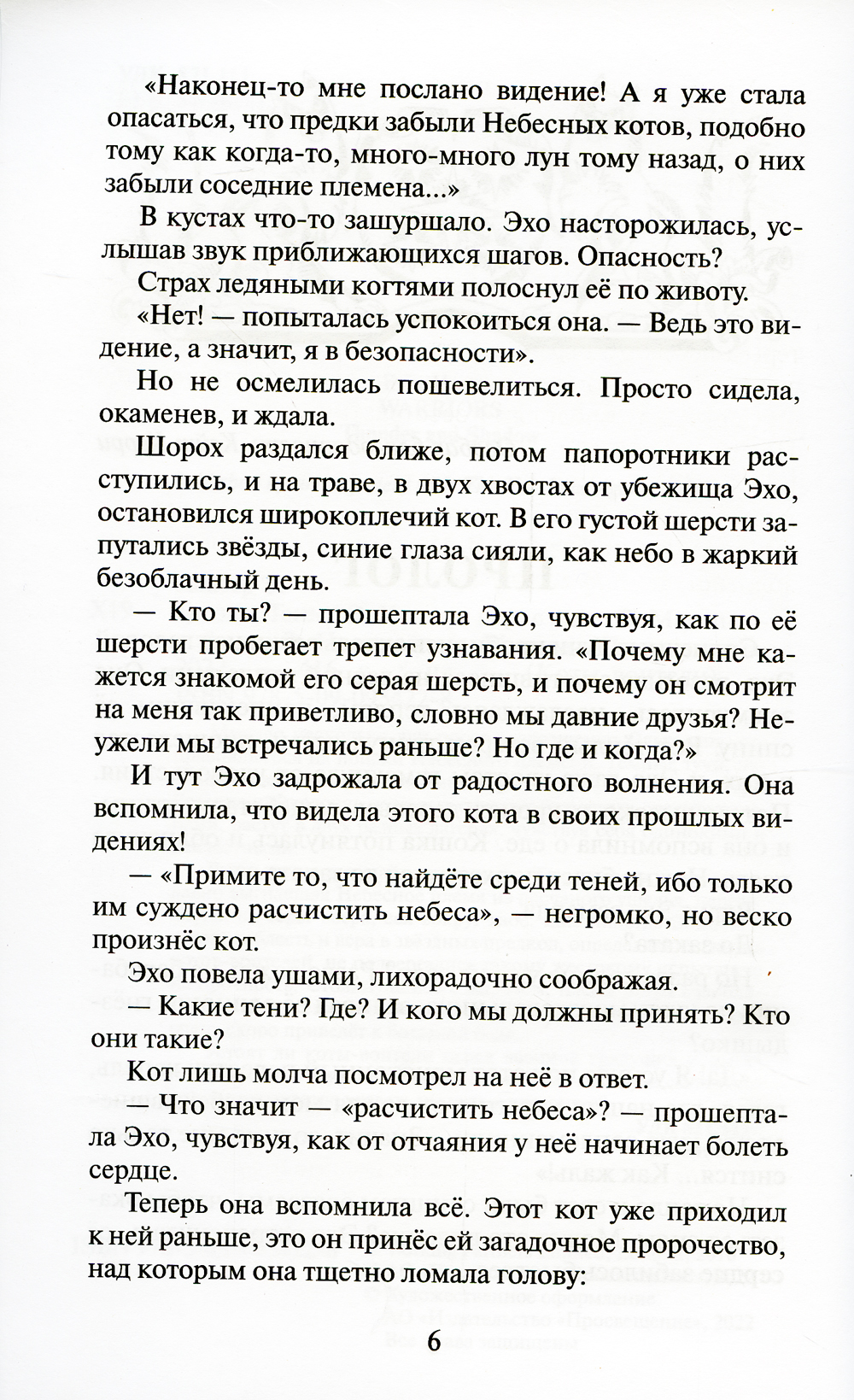 Минуло несколько лун после возвращения Ольхолапа, отправившегося на поиски Небесного племени. Тёмные тучи, нависшие над лесом, продолжают сгущаться. Маленькие сёстры Веточка и Фиалочка, которых считают будущими спасительницами, растут в двух разных лагерях, чувствуя себя одинокими и несчастными. В это же время шайка коварного Темнохвоста, совсем недавно выгнавшая Небесное племя из песчаного ущелья, переселяется на берег озера, сея вокруг хаос. Ещё никогда Воинский закон, доблесть и вера в звёздных предков, определявшие жизнь котов-воителей, не подвергались такому жестокому испытанию на прочность. Столкнувшись с вызовом, племя Ветра озлобляется против всего света, а в племени Теней зреет смута, которая очень скоро приведёт к большой беде. Устоят ли коты-воители перед лавиной грядущих испытаний? Сохранят ли они верность Воинскому закону, и сможет ли новое пророчество указать им путь к спасению?| Издательство | Просвещение |