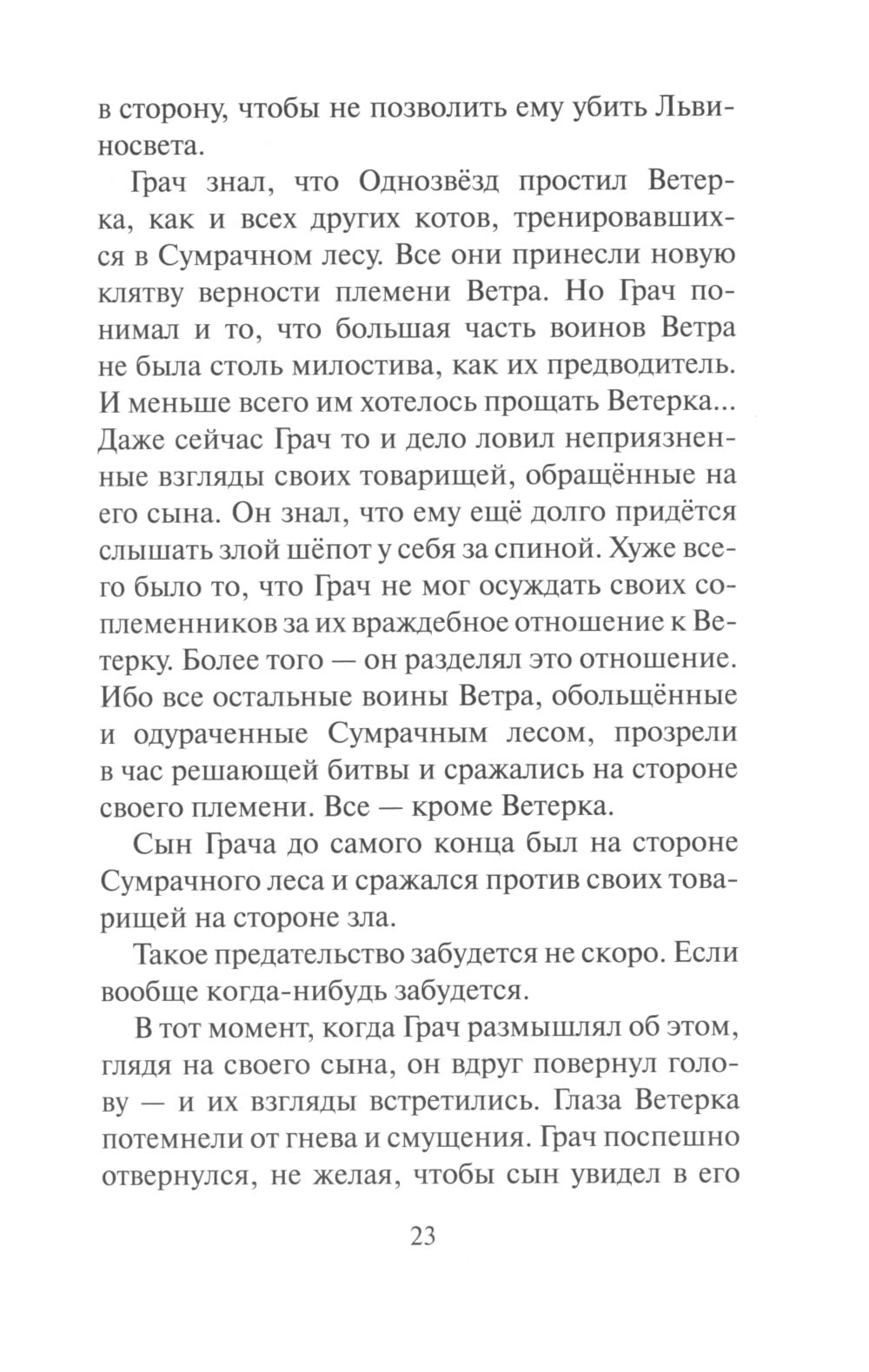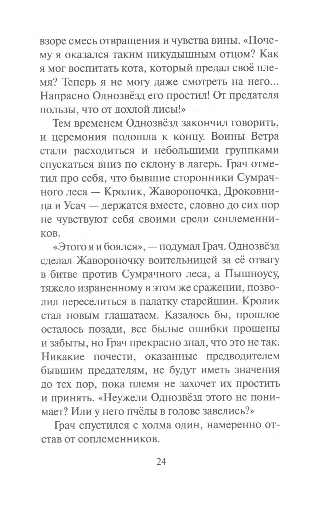 Грач всегда был верным воином Ветра, который отважно сражается за своё племя и защищает друзей. Однако после битвы с котами Сумрачного леса ему очень нелегко простить своих товарищей, когда-то преступивших Воинский закон и вставших на сторону врагов. Особенно если один из отступников - твой собственный сын. Предводитель Однозвёзд намерен раз и навсегда покончить со всеми склоками и раздорами, но напряжение в племени лишь нарастает и всё чаще случаются конфликты. Именно в эти непростые времена в самом сердце территории Ветра возникает новая угроза, которая представляет для всех страшную опасность. Время сомнений прошло: Грач должен найти равновесие между верностью своим идеалам и преданностью товарищам, чтобы вновь занять своё законное место в ряду истинных воинов племени. «Тени прошлого» - первая книга спецтома-дилогии «Испытание Грача».| Издательство | Просвещение |