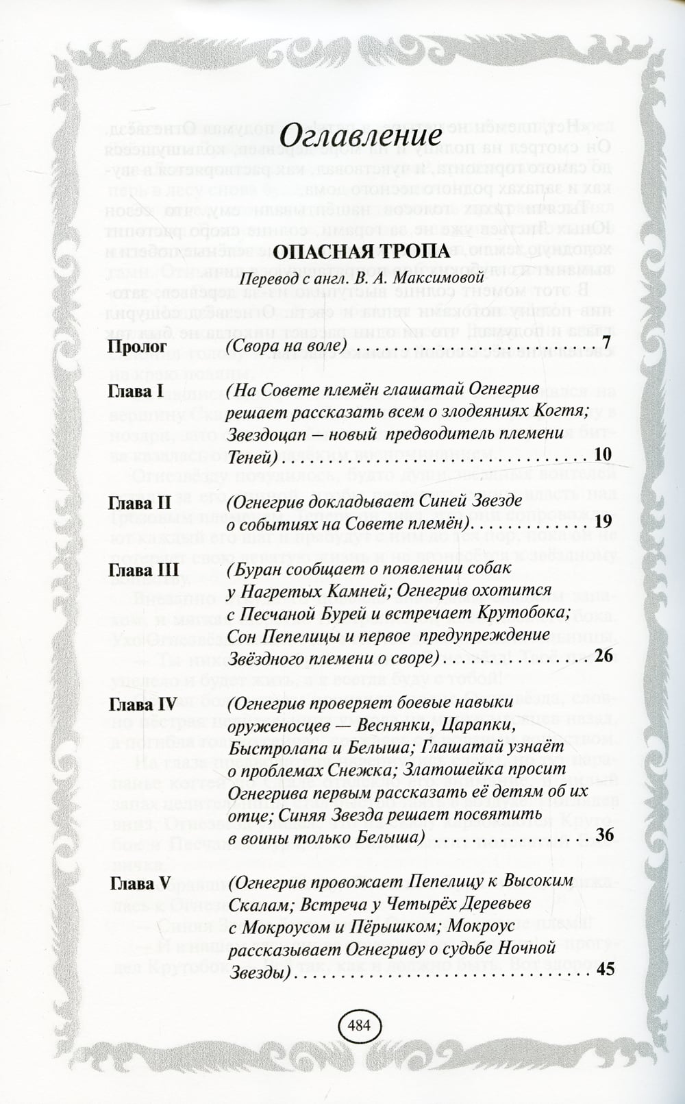 Пятая книга серии о котах-воителях «Опасная тропа» рассказывает о новой страшной опасности, которая пришла в лес, едва успевший оправиться после пожара. Свора свирепых бродячих псов находит тайное прибежище на территории Грозового племени. Звёздные предки посылают предупреждение за предупреждением о затаившемся в лесу зле, но никто из Грозовых котов не в силах истолковать их. Глашатай Огнегрив вновь и вновь спасает своё племя. Шестая книга серии «Битва за лес» повествует о том, как Огнезвёзд, став предводителем Грозового племени, отправляется к святилищу в Высоких Скалах за Даром девяти жизней. Во время таинства он видит страшное предзнаменование и получает пророчество о приближении кровавых времён... Великолепное издание большого подарочного формата с цветными иллюстрациями. Третий том серии «Коты-воители. Золотая коллекция».| Издательство | Просвещение |