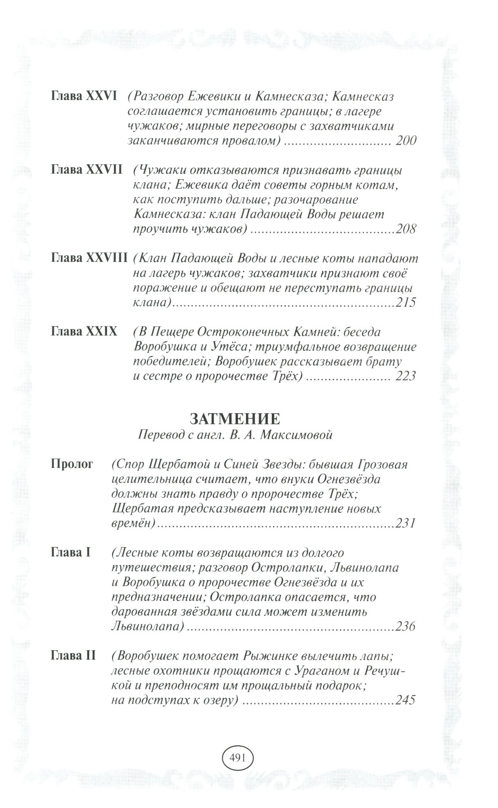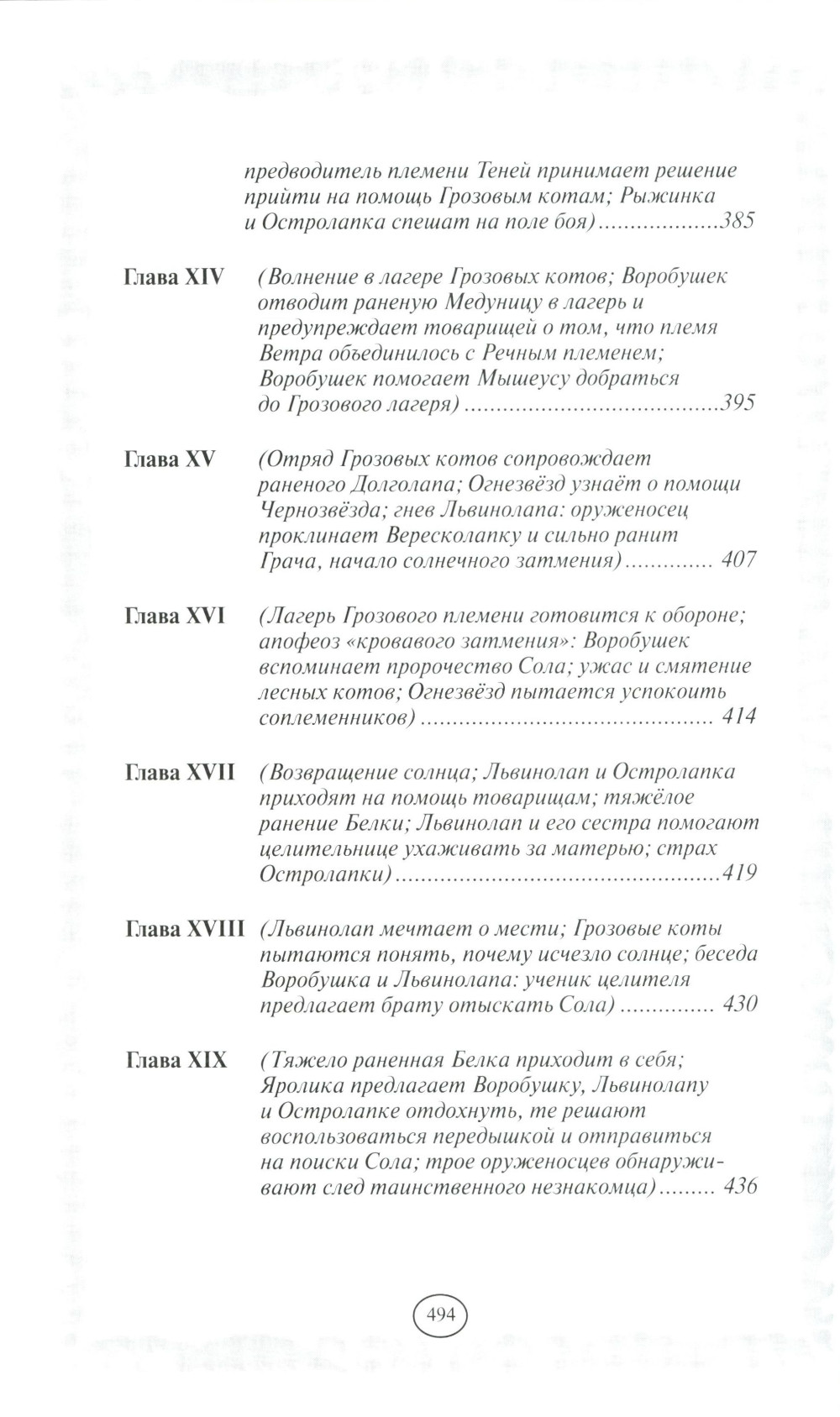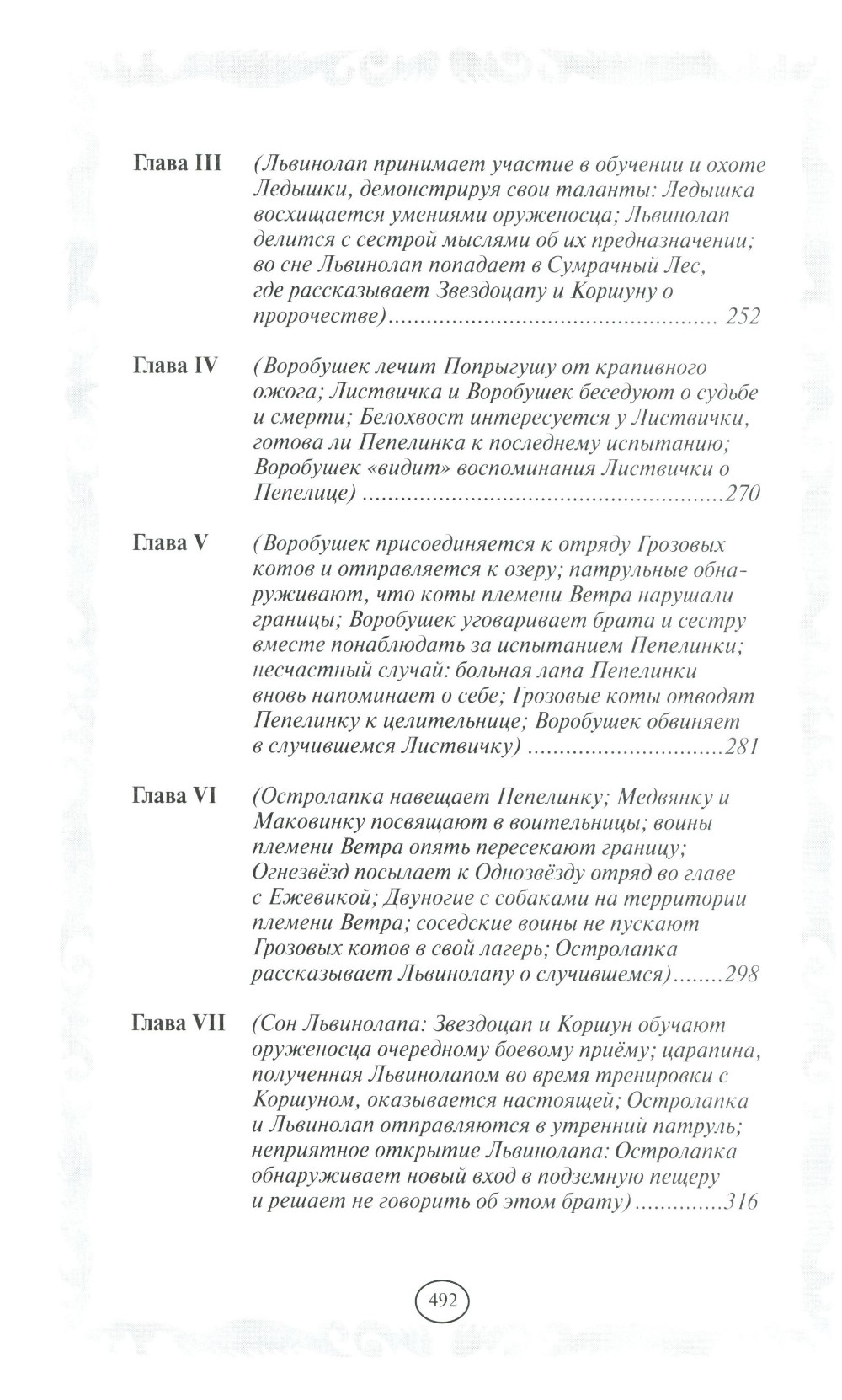 Пятнадцатая книга серии о котах-воителях "Отверженные" повествует о приключениях троих внуков Огнезвёзда. Их судьбы связывает таинственное пророчество, но лишь один из них - Воробушек - знает об этом. Он чувствует непреодолимое желание попасть в горы, где, как полагает ученик целительницы, ему удастся узнать не только о самом пророчестве, но и о том, что случилось с древними котами, когда-то жившими на берегах озера. Остролапке и Львинолапу тоже очень хочется увидеть мир, и когда с просьбой о помощи к Грозовым котам обращаются представители клана Падающей Воды, такая возможность им предоставляется. Коты отправляются в путешествие к далёким горам, даже не подозревая о том, насколько опасным окажется этот путь... Шестнадцатая книга серии "Затмение" рассказывает о том, как на Остролапку, Львинолапа и Воробушка, пытающихся понять, что сулит им владение "силой звёзд", тяжёлой ношей ложится ответственность за будущее всех племён. Способности троих оруженосцев подвергаются испытанию, когда на Грозовых котов неожиданно нападают те, от кого они никак не могли этого ожидать. Все племена оказываются втянутыми в страшную битву. Над лесом сгущается тьма, а таинственный незнакомец предупреждает котов-воителей о грядущих опасностях. Кажется, впервые у Звёздного племени нет ответов на вопросы своих подопечных... Великолепное издание большого подарочного формата с цветными иллюстрациями. Восьмой том серии "Коты-воители. Золотая коллекция".| Издательство | Просвещение |