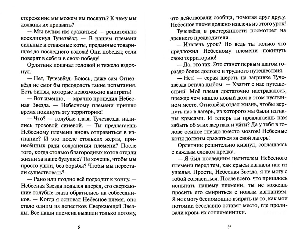 Много воды утекло с тех пор, как Огнезвёзд и Песчаная Буря, исполняя пророчество звёзд, возродили угаснувшее Небесное племя, объединили его и вернули на путь Воинского закона. Пора испытаний сменилась временем процветания. На границах теперь вновь спокойно, а территория племени полна дичи. Но внезапно целительница Эхо получает пророчество от звёздных предков - Небесных котов предупреждают о надвигающейся беде и заклинают как можно быстрее разыскать потомков Огнезвёзда. Юный воин Орлокрылый полон решимости проявить себя, исполнить пророчество и защитить товарищей от грядущих опасностей. Какое счастье, что именно в это время в лагере появляется кот по имени Темнохвост, который с готовностью предлагает свою помощь. Он всеми силами старается заслужить доверие Небесных воинов и даёт им бесценные советы. Однако бедствия начинают преследовать их постоянно: поиски неизменно заканчиваются неудачами, а в жестоких схватках они теряют одного воина за другим. Кажется, будто чья-то невидимая сила неумолимо подталкивает котов к гибели... Сумеет ли ослеплённое страхом и отчаянием Небесное племя найти путь к спасению в сгустившемся вокруг них сумраке? «Ослепление» - первая книга спецтома-дилогии «Путешествия Орлокрылого».| Издательство | Просвещение* |