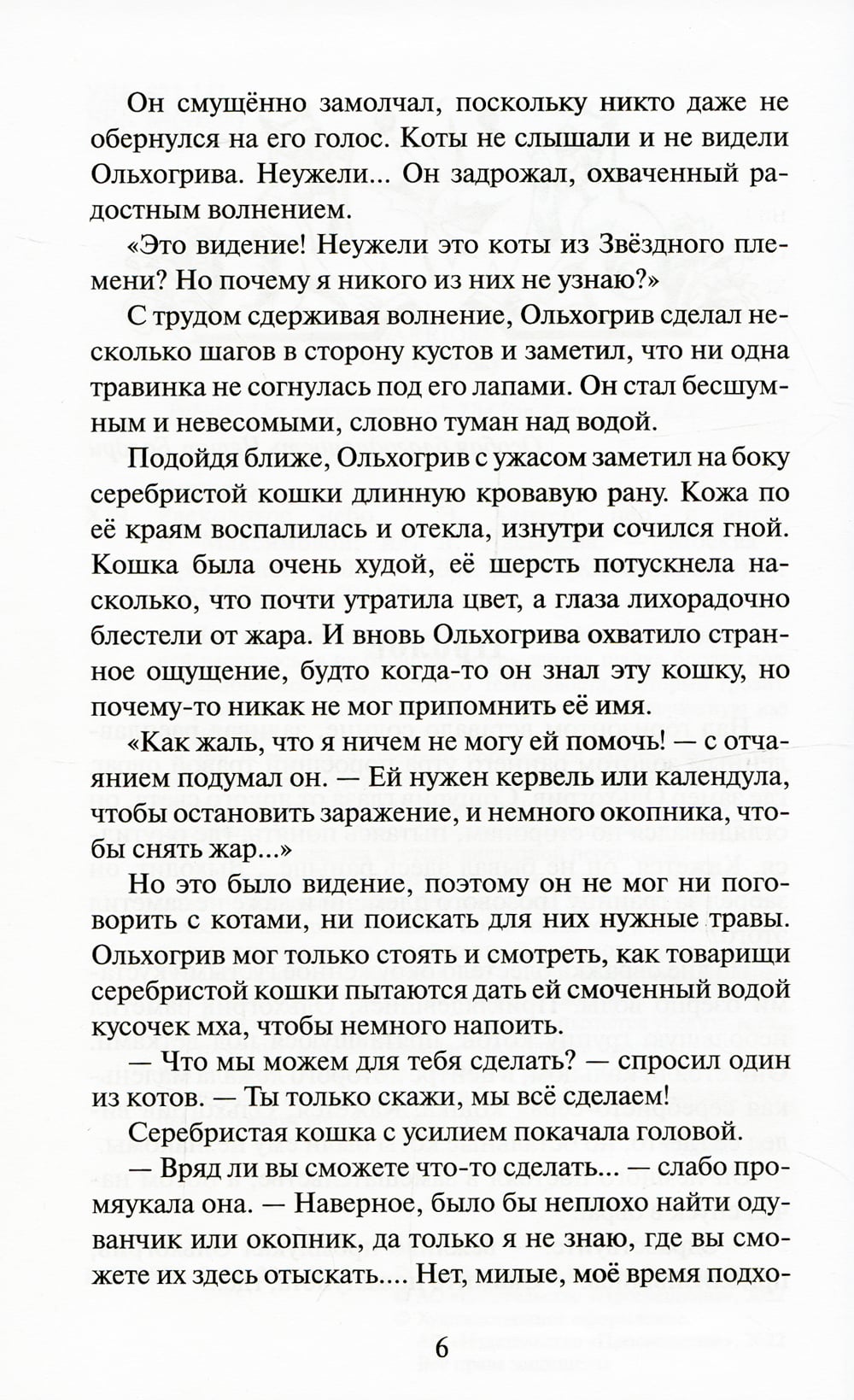Для котов-воителей настали тёмные времена. Племя Теней распалось, а их бывший лагерь заняла шайка бродяг под командованием безжалостного Темнохвоста, который грозит смертью каждому, кто осмелится ступить на захваченную им территорию. Три оставшихся племени собираются вместе, чтобы изгнать самозванцев и восстановить покой в лесу, однако в разгар битвы Однозвёзд со своими воинами внезапно покидает поле сражения. Что случилось с предводителем племени Ветра? Какая тайна скрывается за столь внезапной переменой? Без воинов Ветра союз распадается, отныне ни один кот не может чувствовать себя в безопасности. Звёзды молчат, а Темнохвост лишь крепче сжимает когти над лесом, и никто не знает, какое племя станет новой жертвой жестокого вожака бродяг. Тучи всё плотнее сгущаются над котами-воителями, будущее же не сулит им ничего, кроме смерти и забвения. В эти страшные времена Ольхогрив пытается убедить всех, что их единственная надежда - исполнить пророчество предков и найти потерянное Небесное племя. Только так можно предотвратить надвигающуюся бурю и расчистить небеса, чтобы над озером вновь воссиял свет звёзд.| Издательство | Просвещение |