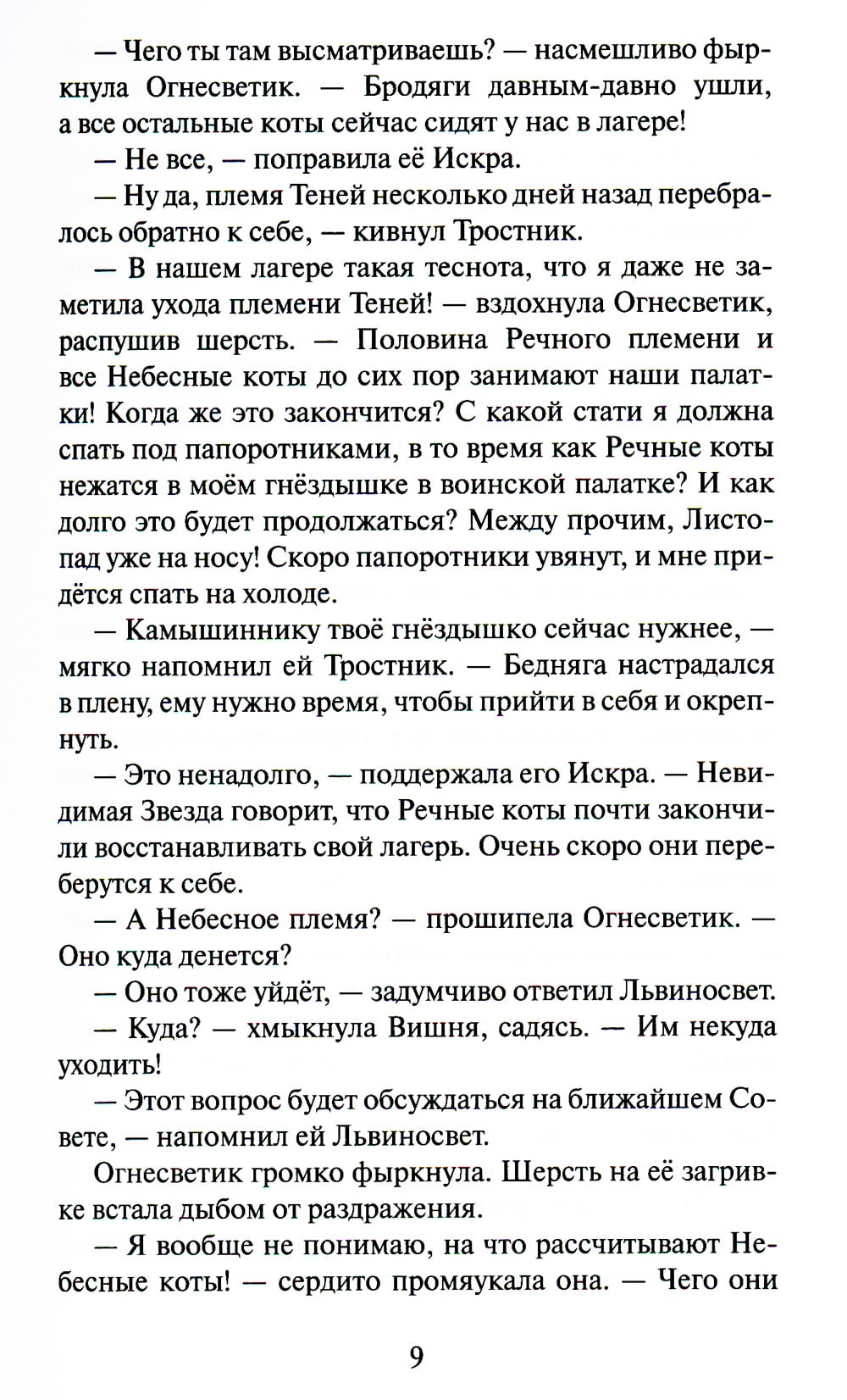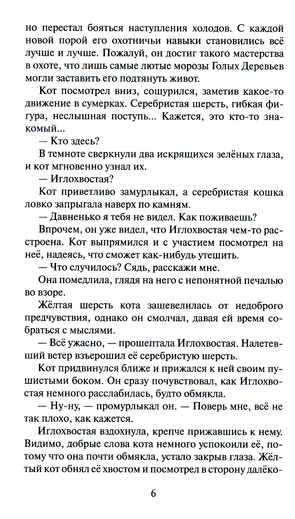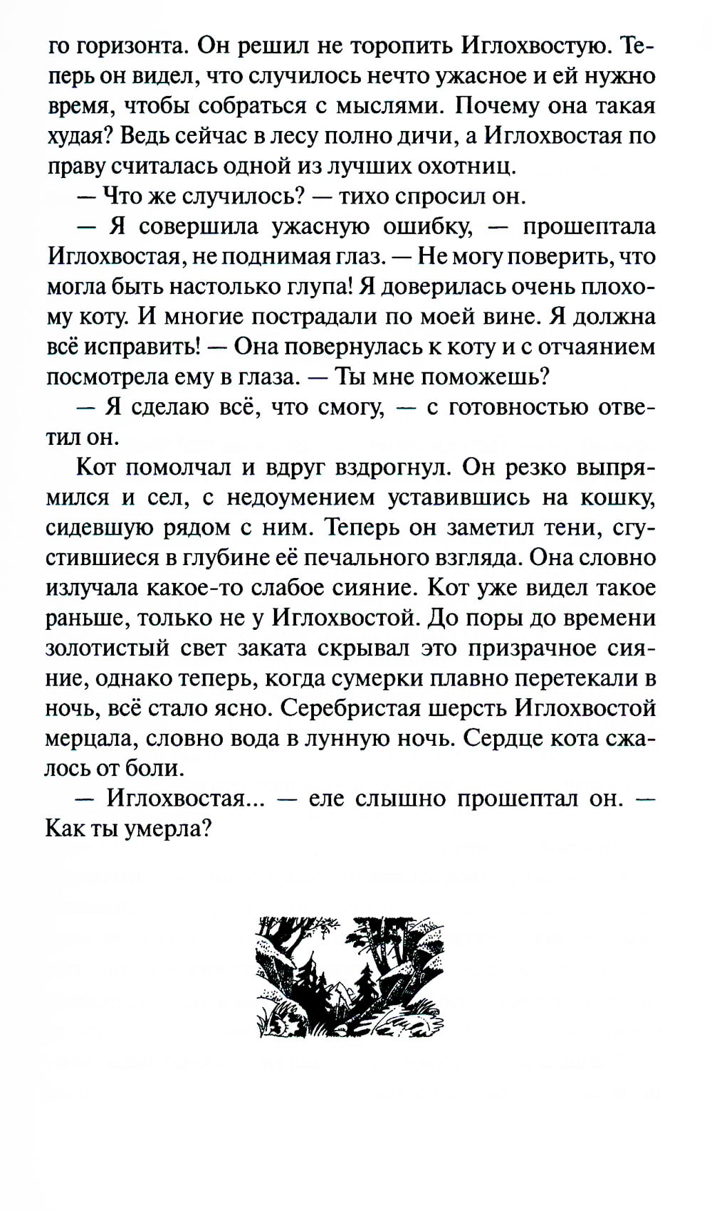 Ценой невероятных усилий и огромных жертв коты-воители одолели Темнохвоста и его банду. Кажется, что все невзгоды остались позади и больше ничего не угрожает их спокойной жизни. Даже многострадальное Небесное племя наконец-то заняло законное место среди сородичей и получило собственную территорию. Однако тёмные тучи, нависшие над лесом, вовсе не спешат рассеиваться. Речные коты решают отгородиться от соседей, а обескровленное племя Теней окончательно теряет веру в своего предводителя и оказывается на грани распада. В эти непростые времена звёздные предки посылают своим подопечным новое пророчество. Они предупреждают племена о грядущей буре, предотвратить которую способен лишь таинственный кот с шестью пальцами на лапе. Кто этот загадочный незнакомец? Где искать его? А главное, как именно он может помочь племенам? Котам остаётся лишь надеяться, что в сгущающемся мраке они сумеют найти путь к спасению, ведь времени на это у них остаётся совсем немного...| Издательство | Просвещение |