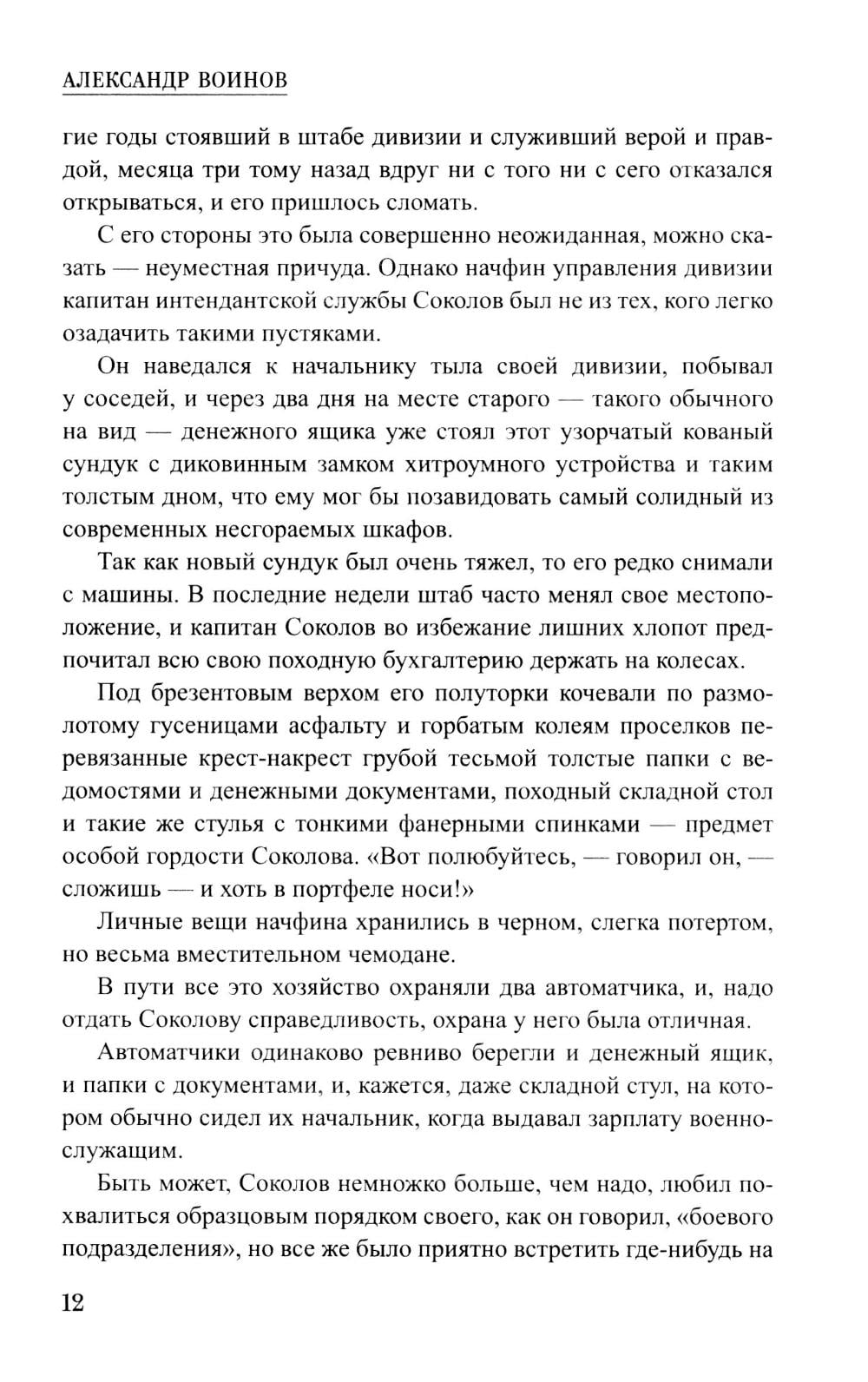 В творческом наследии крупного советского писателя Александра Исаевича Воинова (1912-1979) шпионская тема занимает особое место. Широкую известность завоевала его повесть «Кованый сундук» (1955). В центре сюжета поиск вражеской агентуры во время Великой Отечественной войны. Отступающие немецкие войска пытаются затормозить натиск Красной армии с помощью глубоко законспирированной сети диверсантов. Перед нами один из лучших образцов советской приключенческой литературы: фронтовой документализм здесь удачно сочетается с напряженной фабулой. Точность деталей, борьба логики и интуиции с тщательно построенной «легендой» не дают возможности оторваться от чтения. В поздних повестях писателя «Застава Дальнего острова» (1968) и «Комендантский час» (1975) показано, как формируются характер советского человека, его неукротимая готовность к подвигу. В первой из них рассказано о подростках, живущих на приграничной территории. Даже в мирное время им необходимо принимать быстрые решения, от которых зависят жизни других людей. Во второй - о борьбе советской разведки за спасение одесского порта весной 1944 года.| Издательство | Вече |